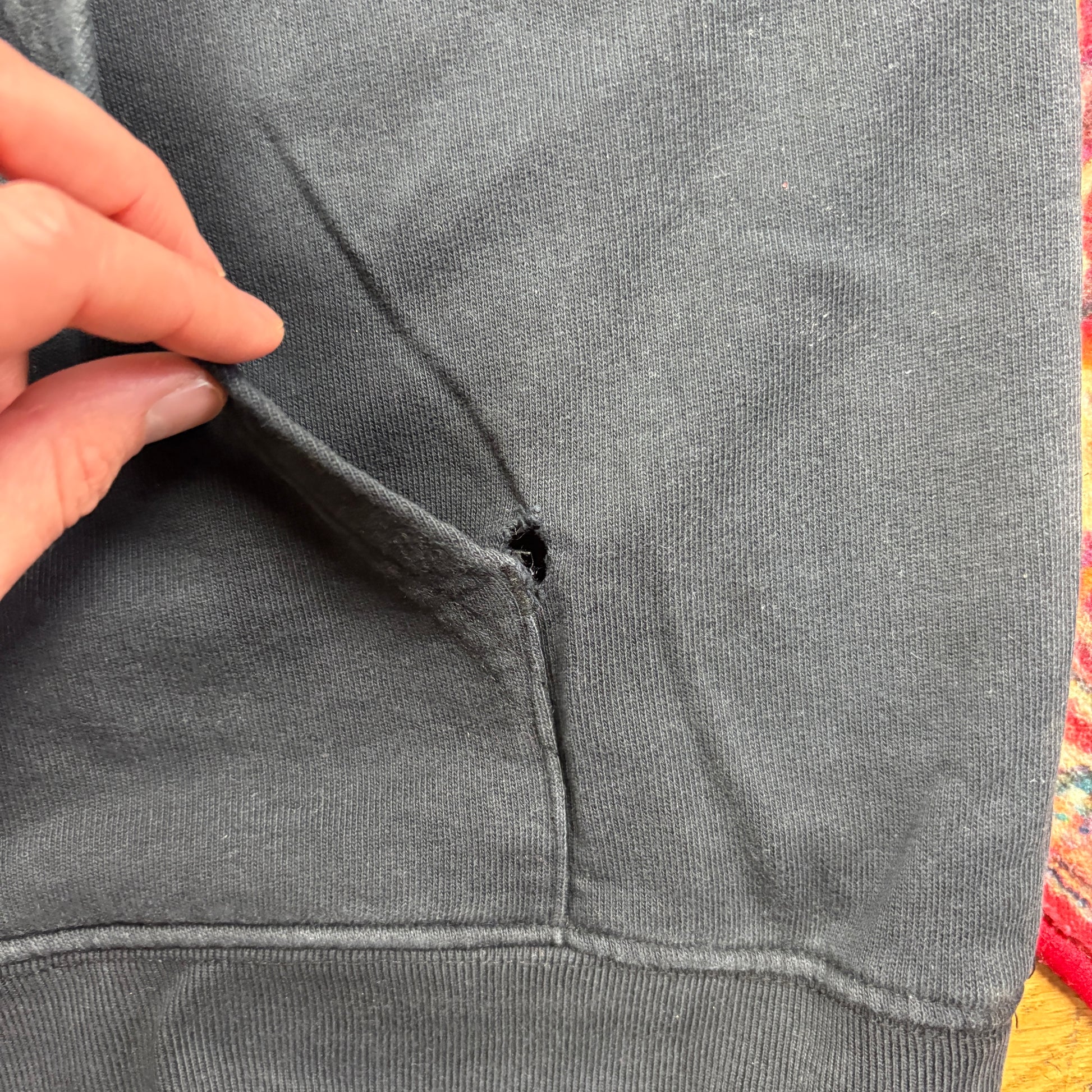 Small hole on pocket, hard to see when worn BS4936