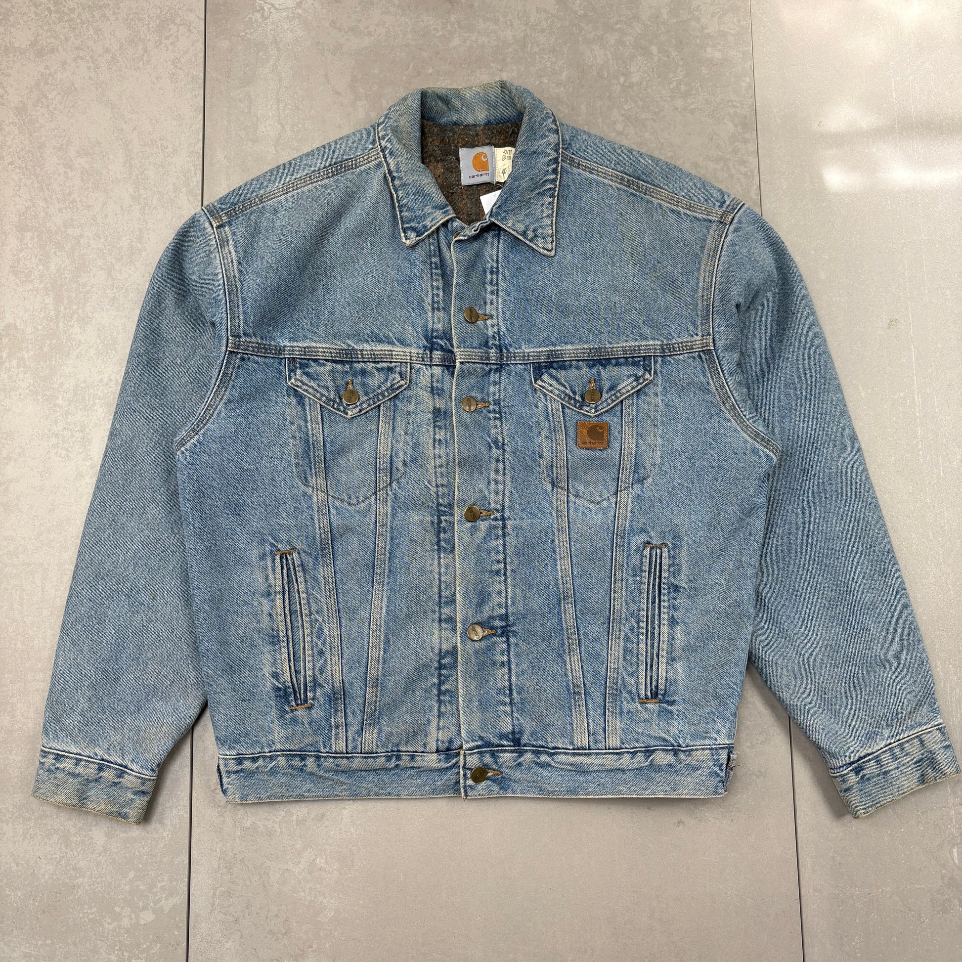 Vintage Carhartt Blue Denim Detroit Trucker Workwear Jacket - M