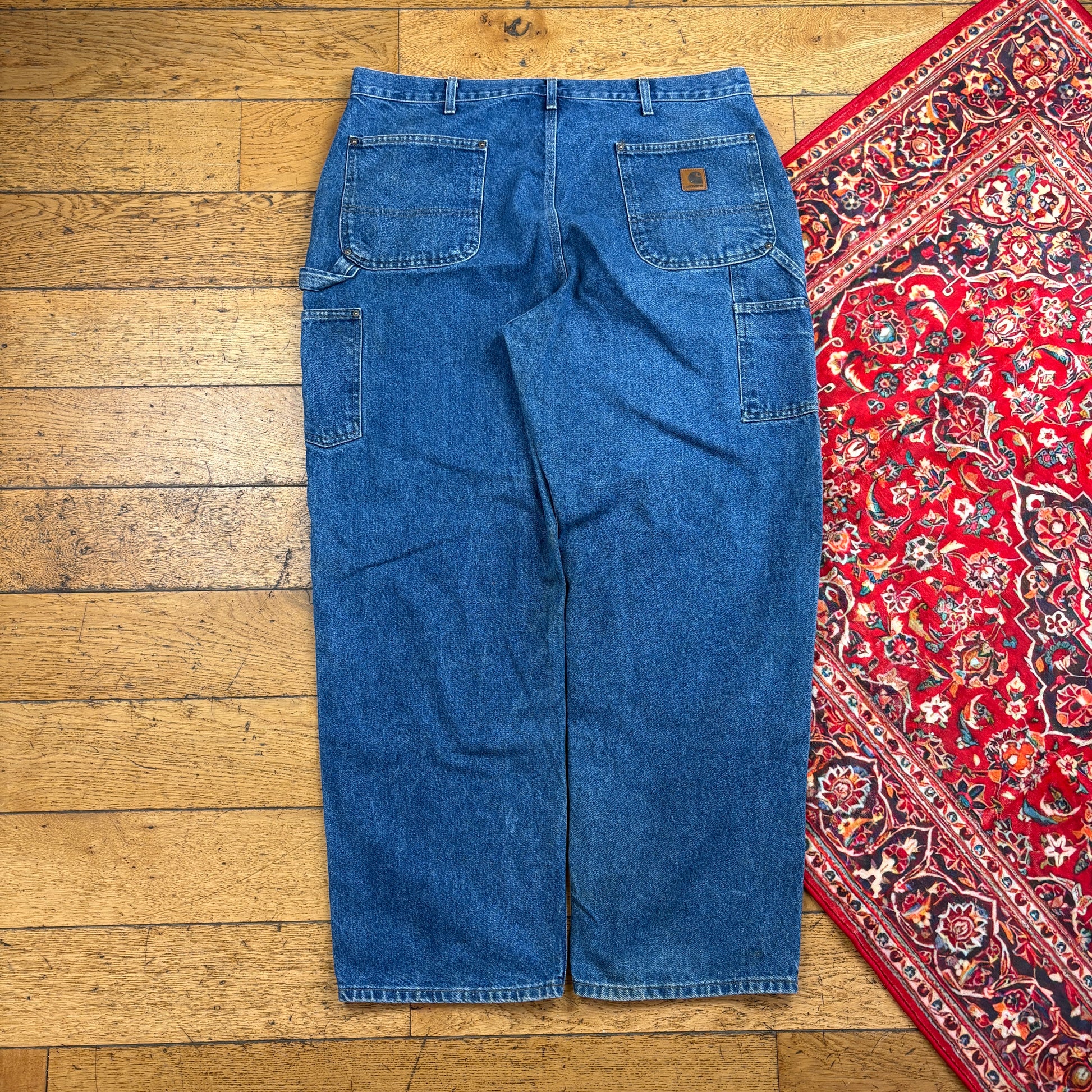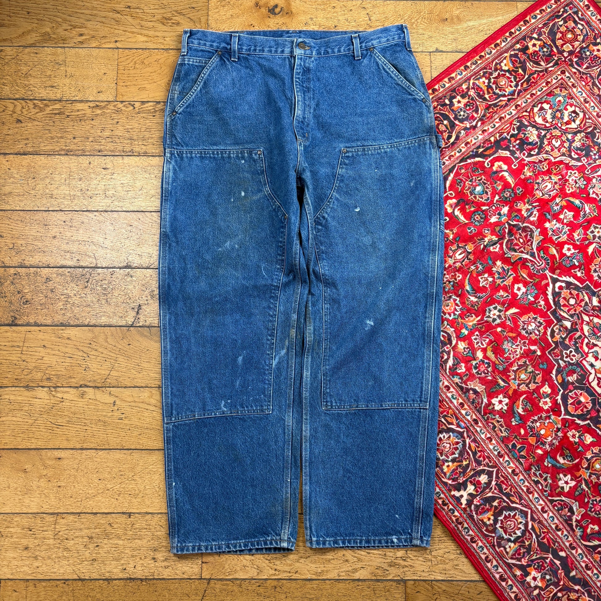 Vintage Carhartt Blue Double Knee Workwear Carpenter Baggy Trousers - 40