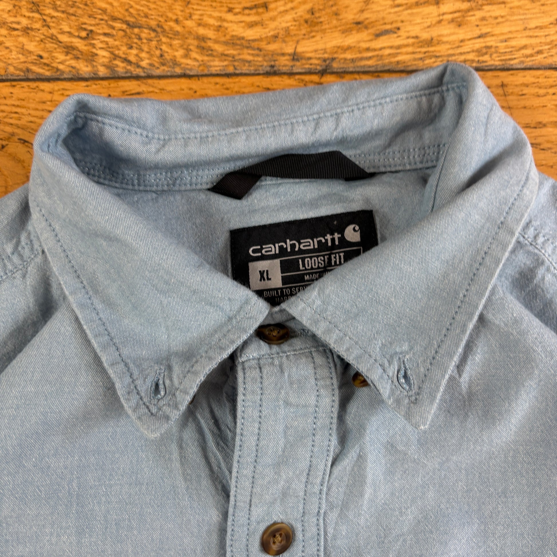 Vintage Carhartt Blue Short Sleeve Workwear Shirt - XL