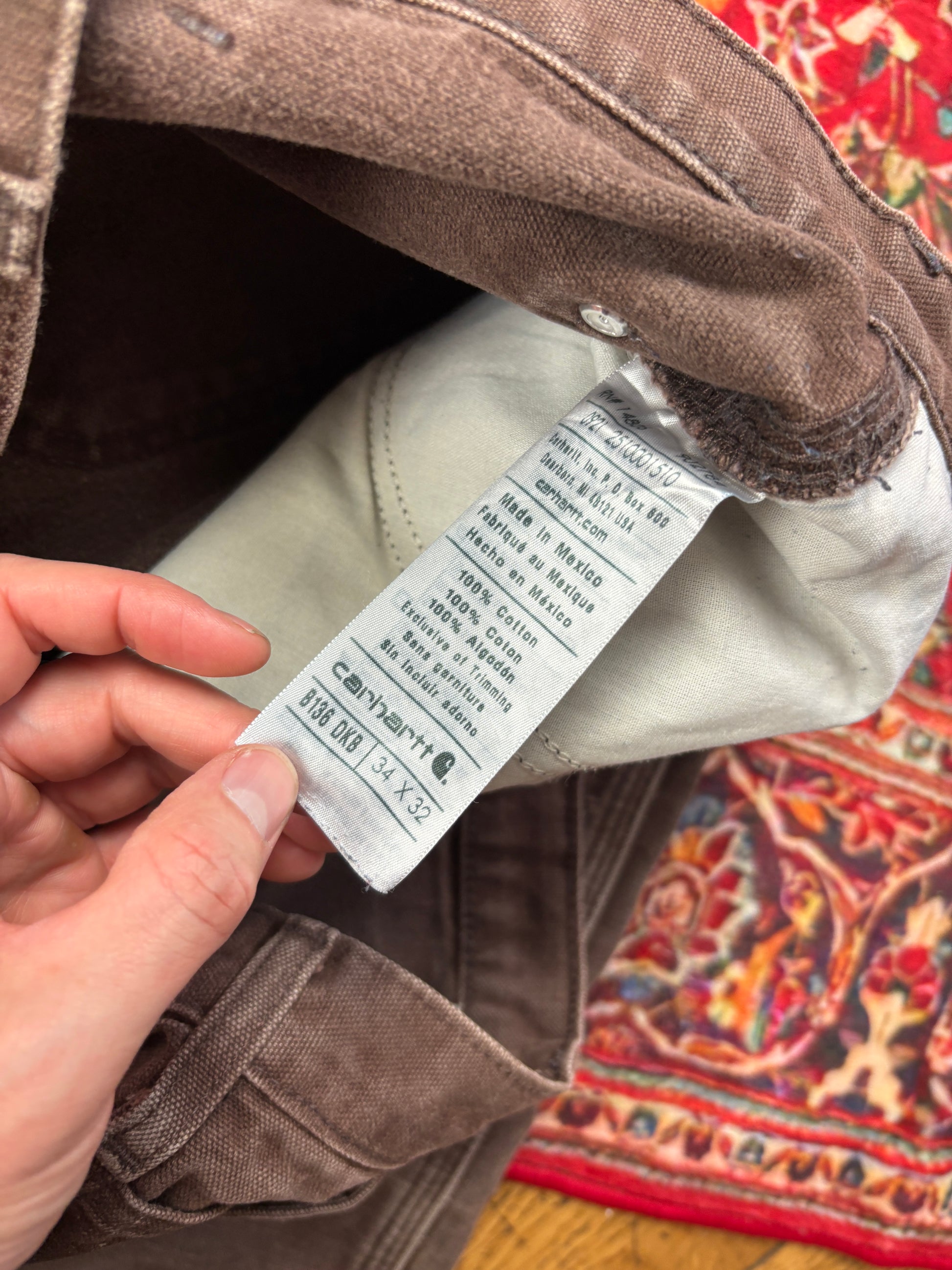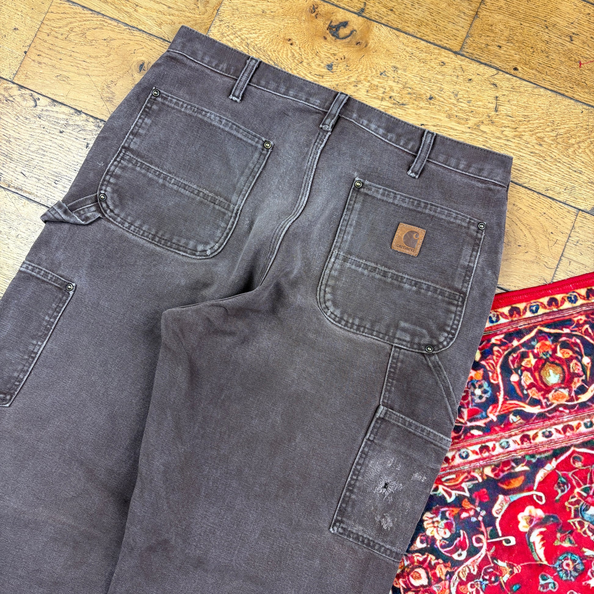 Vintage Carhartt Brown Double Knee Workwear Carpenter Baggy Trousers - 34
