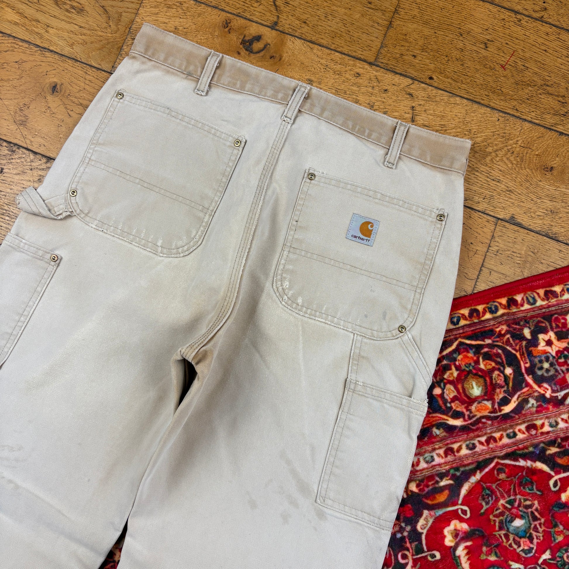 Vintage Carhartt Cream Double Knee Workwear Carpenter Baggy Trousers - 33