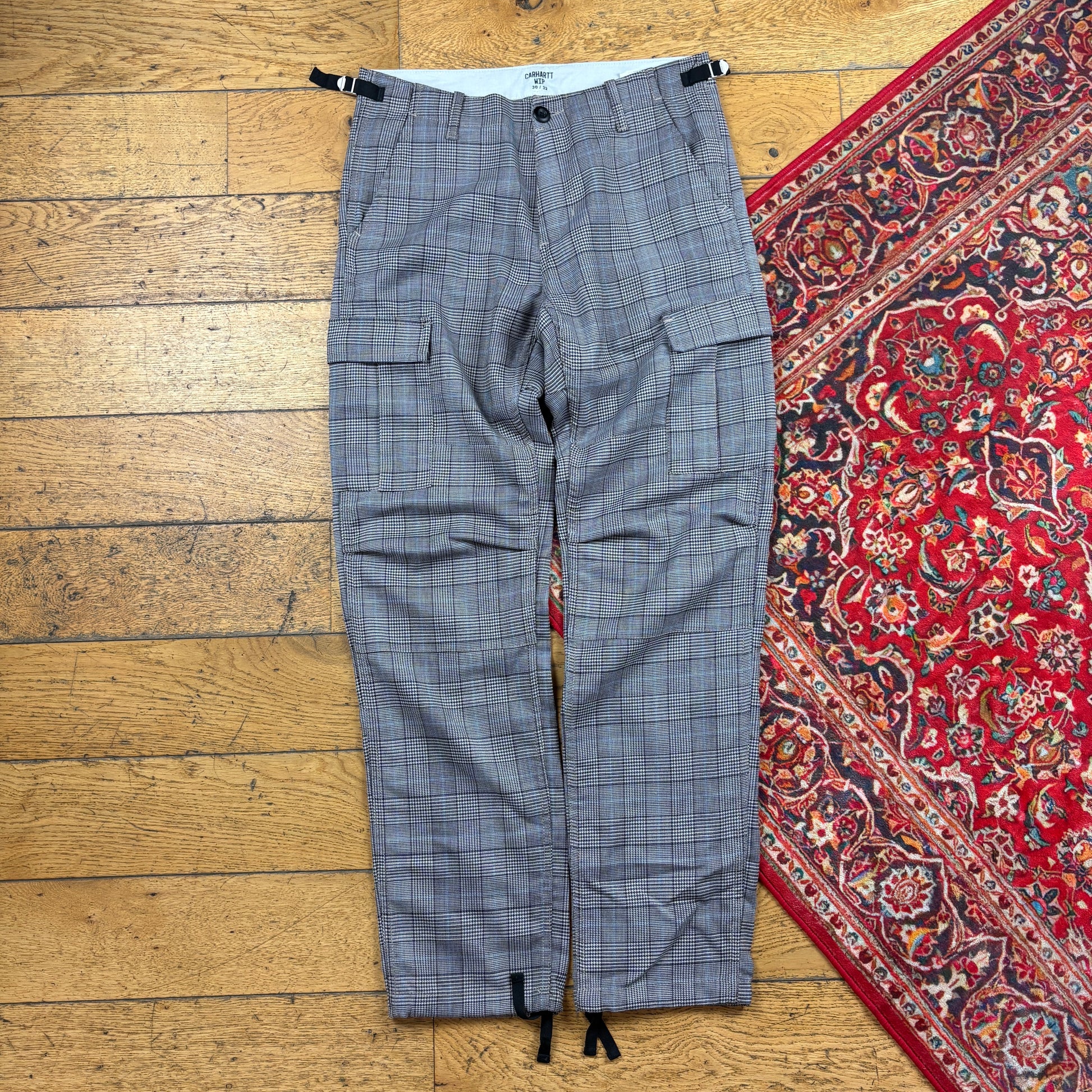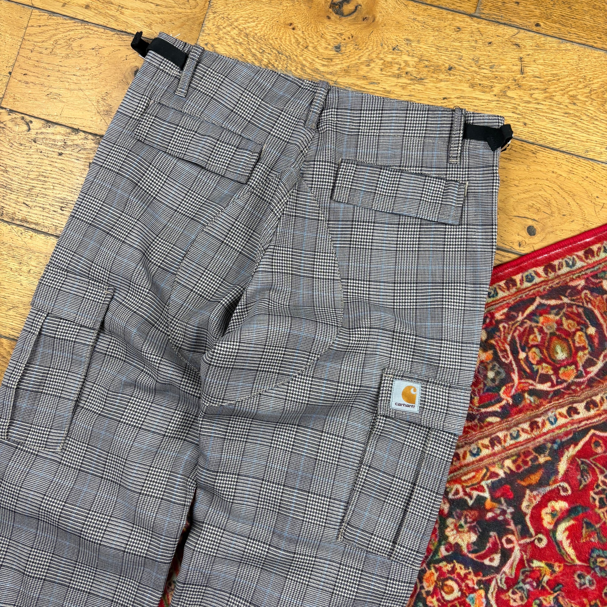 Vintage Carhartt Grey Check Cargo Workwear Carpenter Straight Trousers - 30
