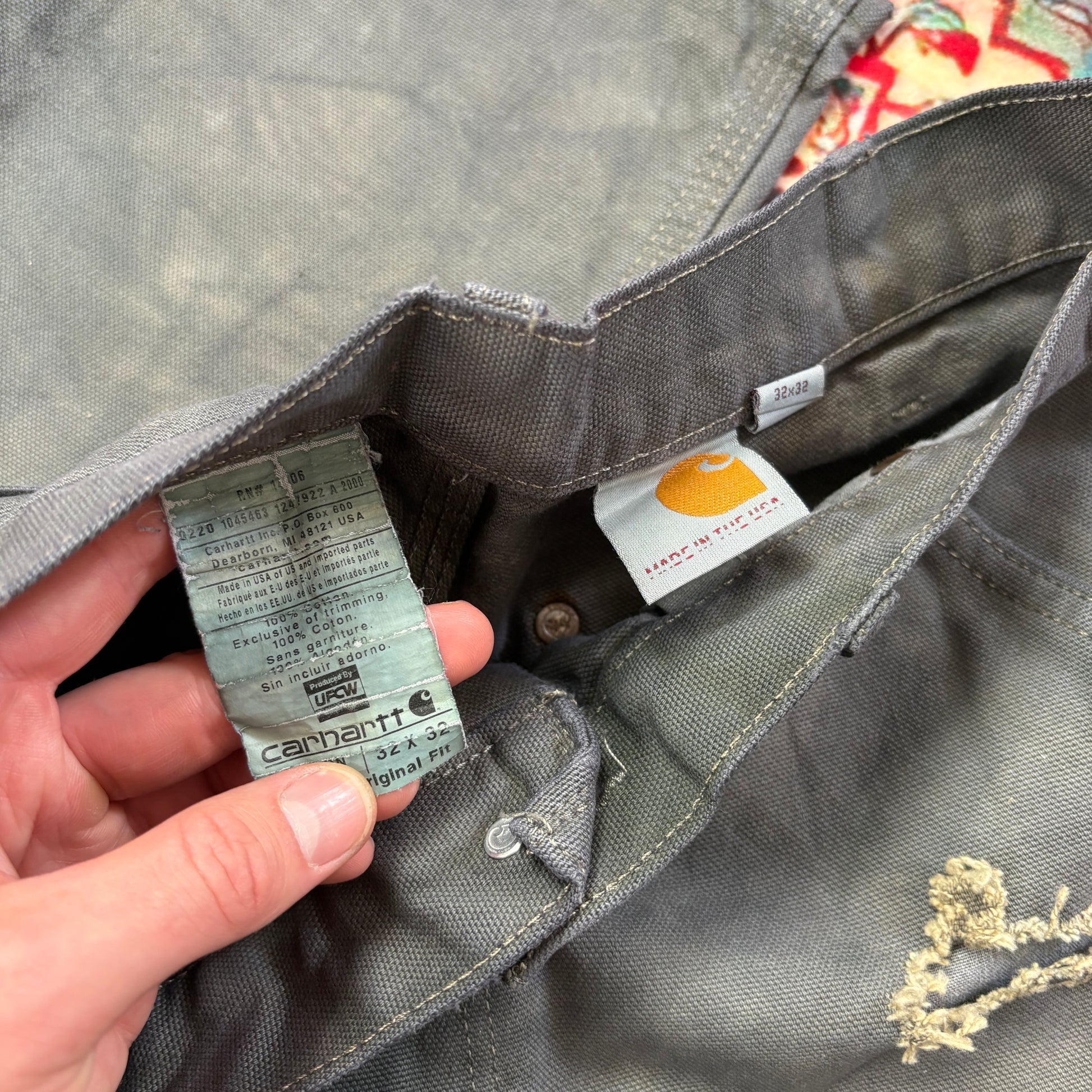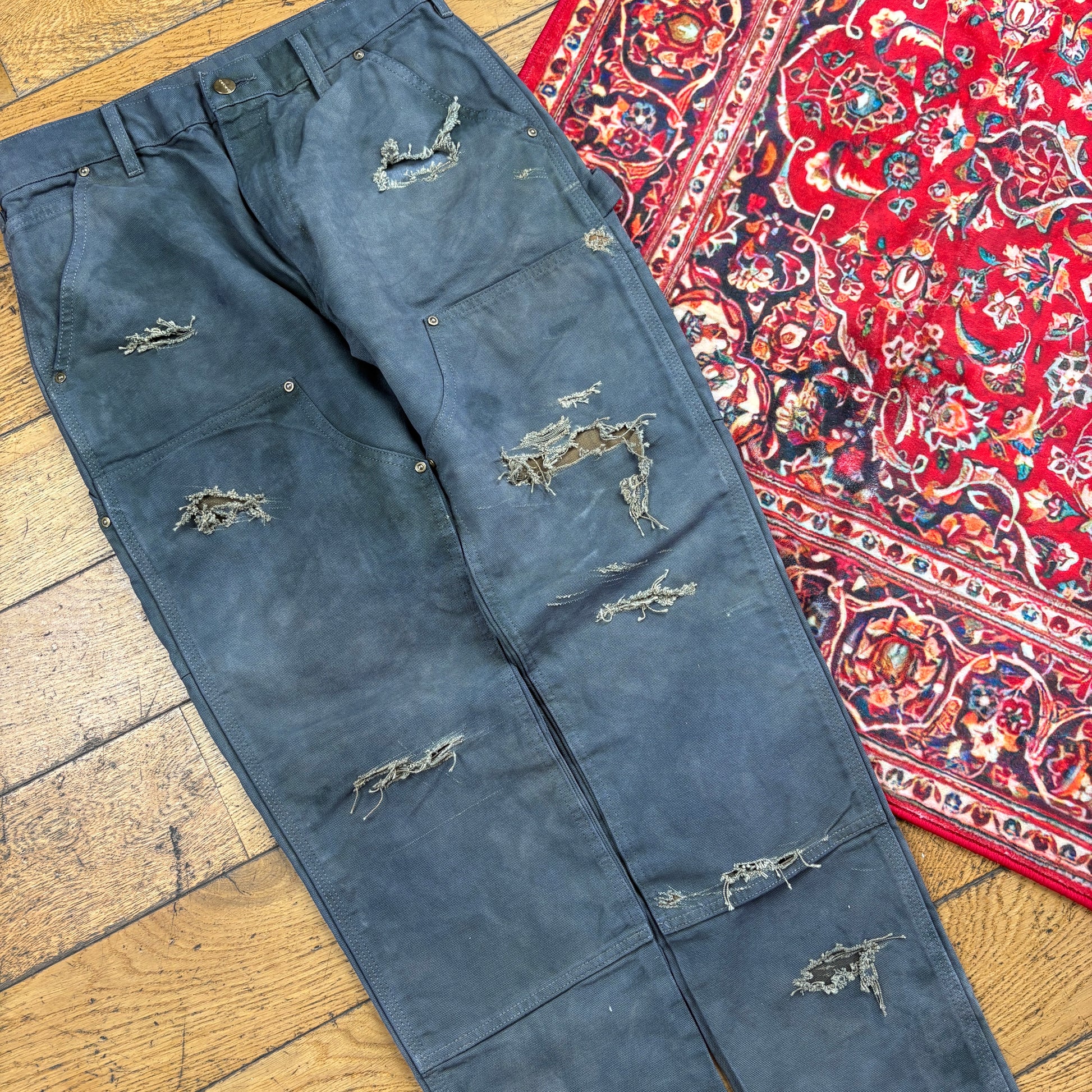 Vintage Carhartt Grey Double Knee Thrashed Workwear Carpenter Slim Trousers - 30