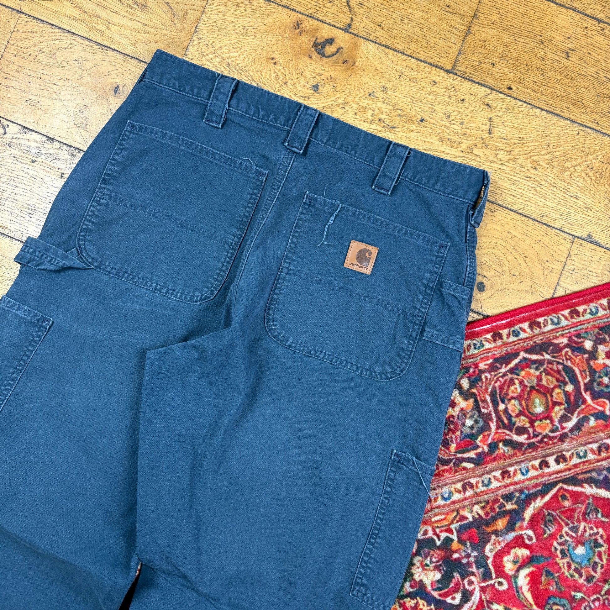 Vintage Carhartt Navy Workwear Carpenter Baggy Trousers - 32