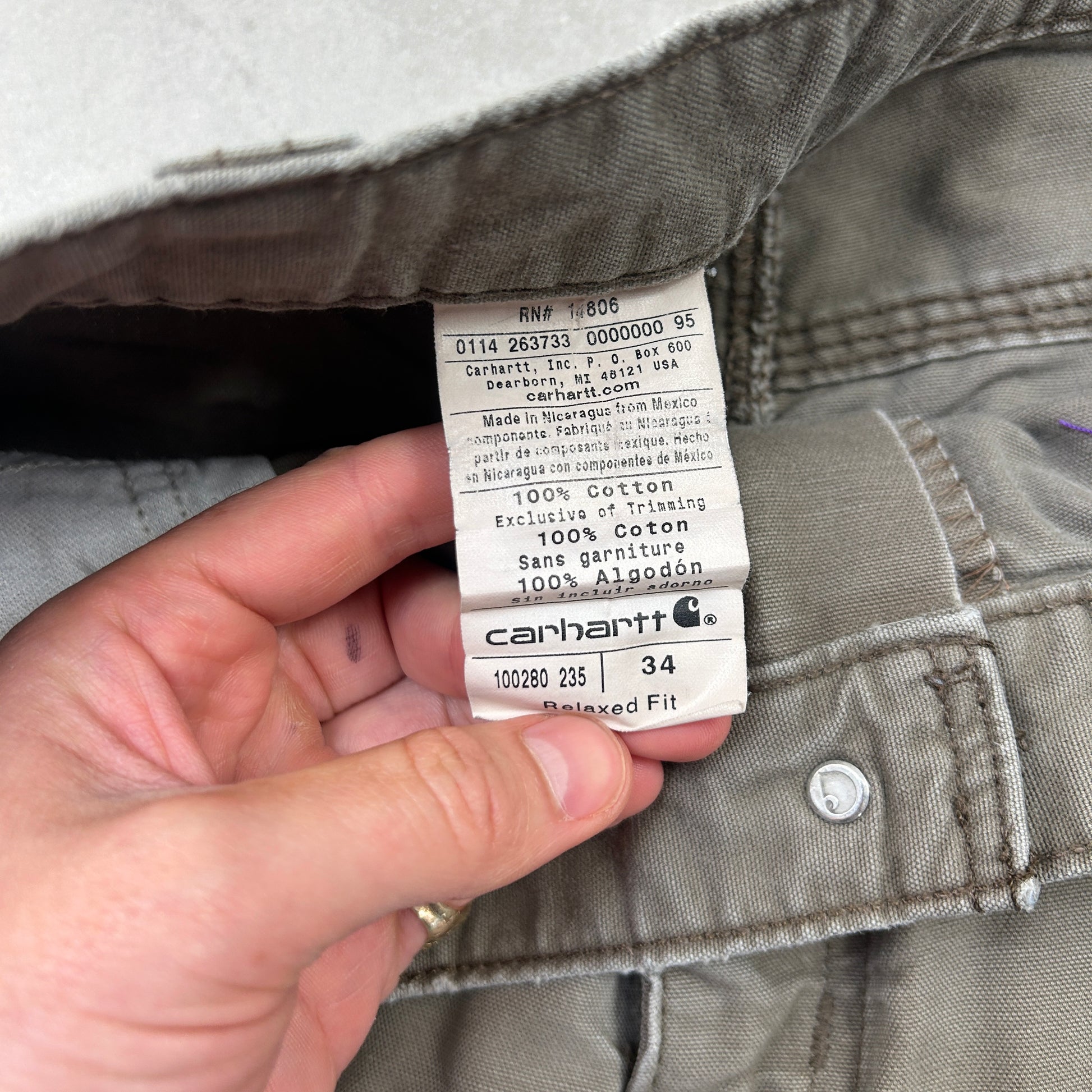 Vintage Carhartt Workwear Baggy Carpenter Green Khaki Shorts - 34
