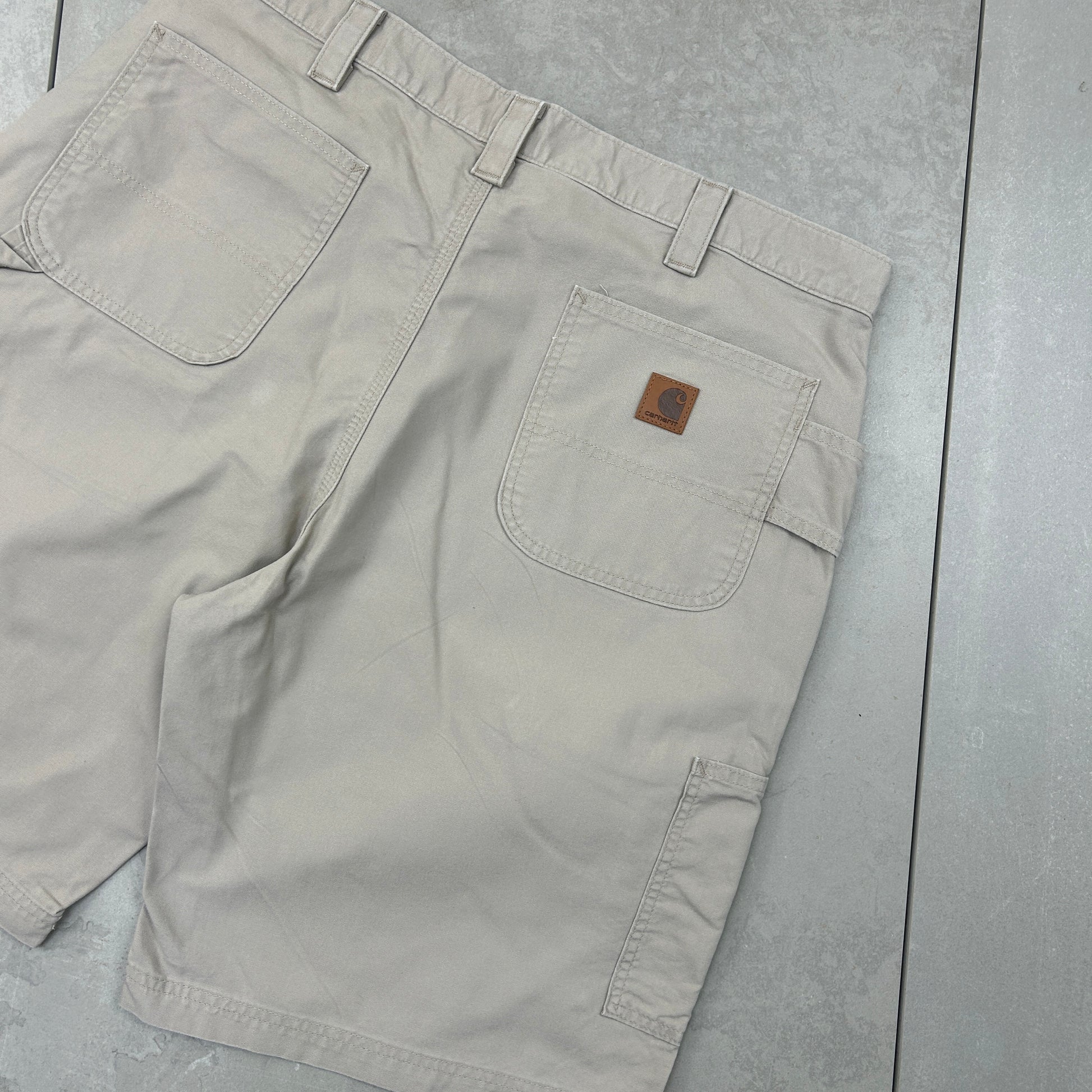 Vintage Carhartt Workwear Baggy Cream Brown Carpenter Shorts - 38