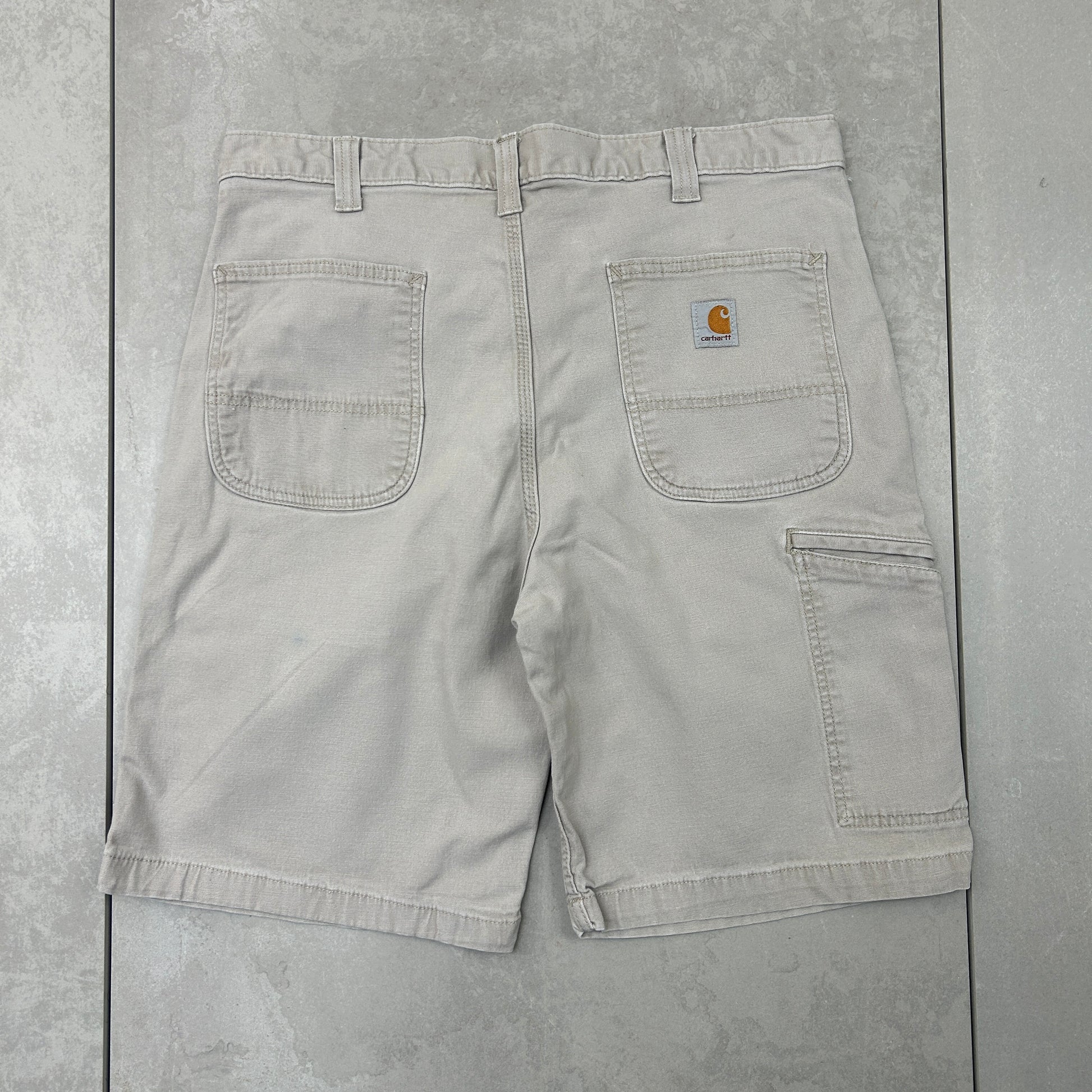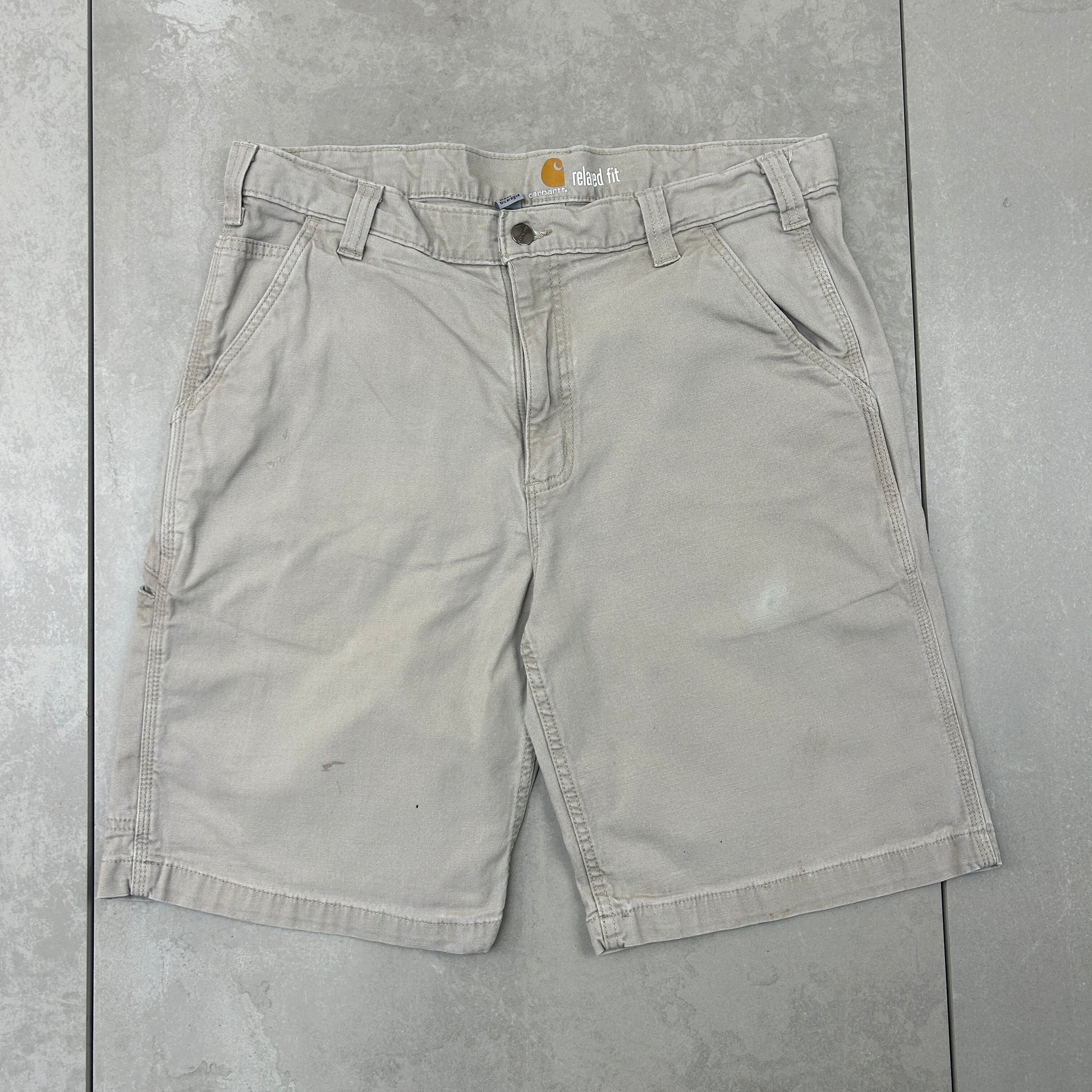Vintage Carhartt Workwear Baggy Cream Carpenter Shorts - 36