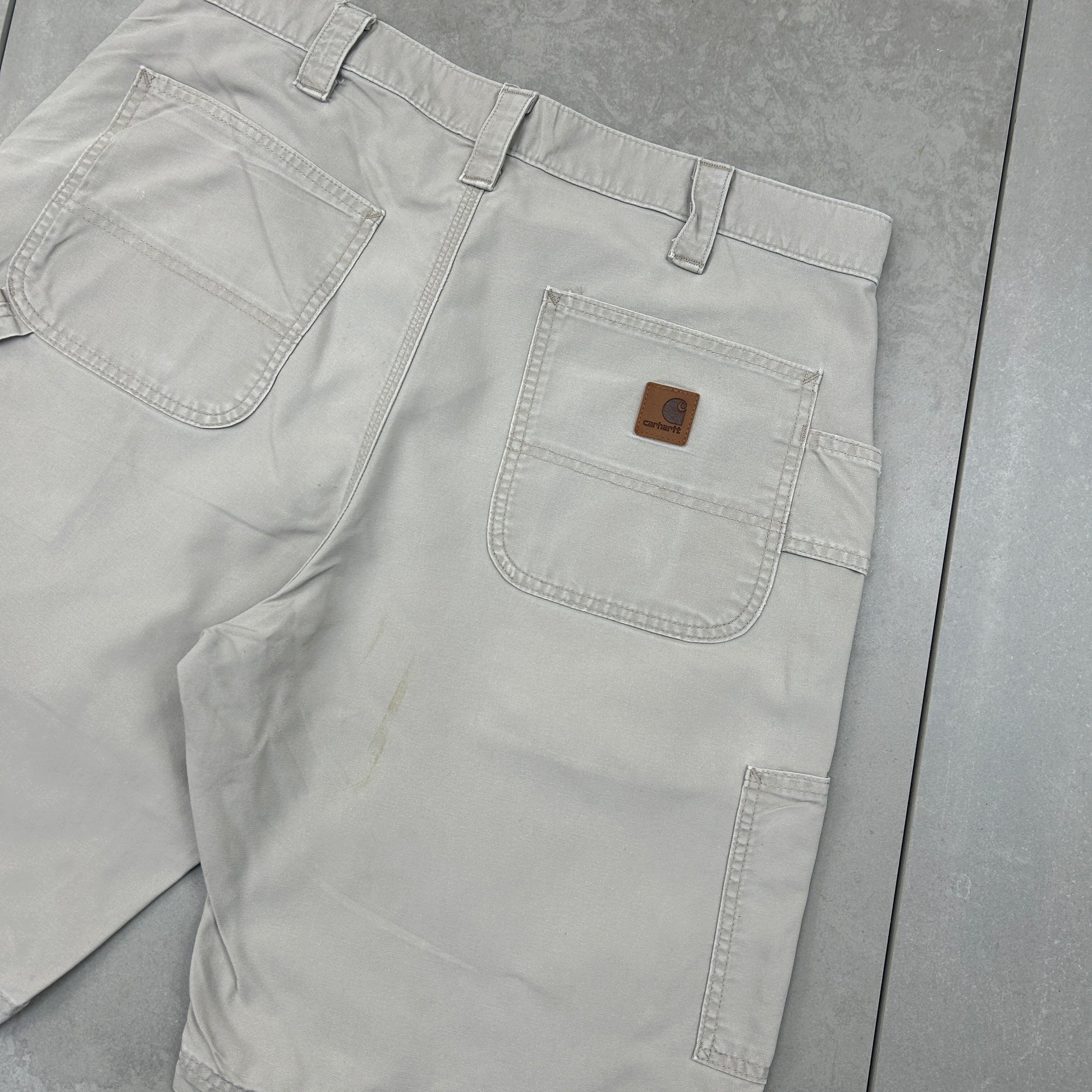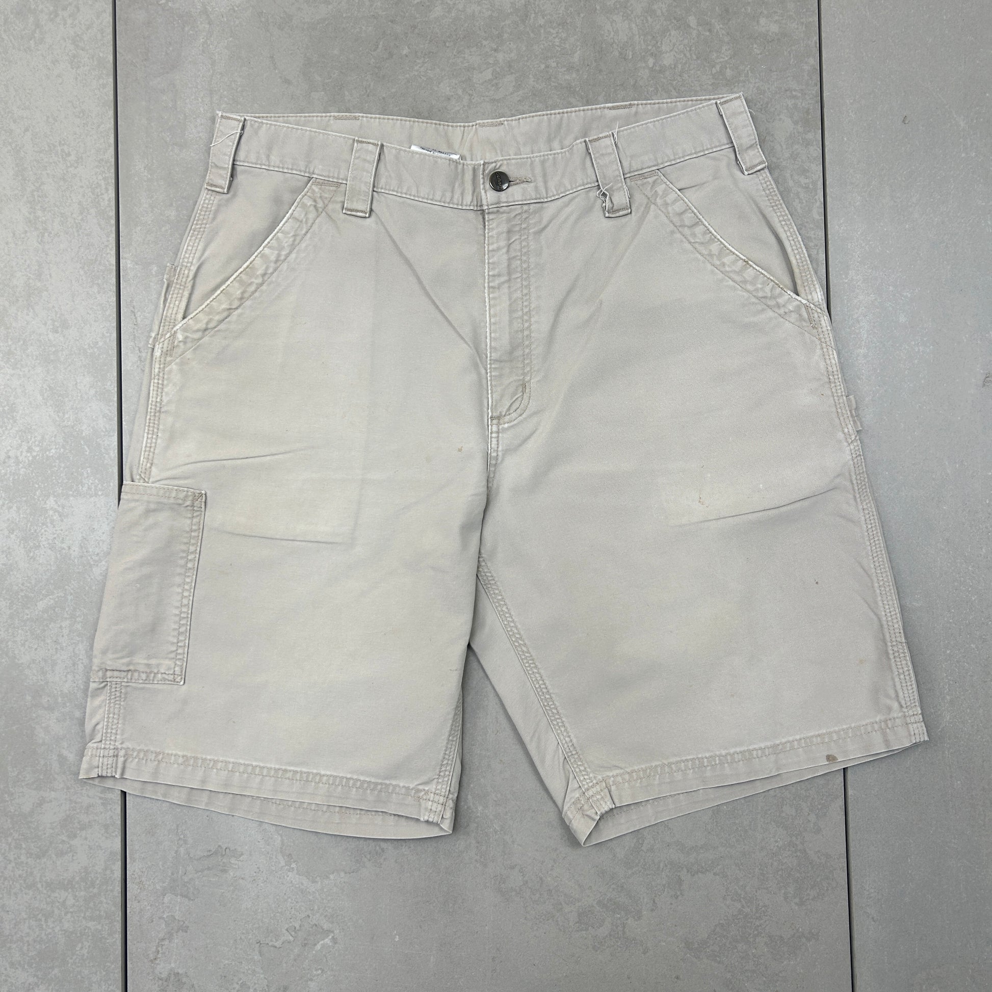 Vintage Carhartt Workwear Baggy Cream Carpenter Shorts - 36