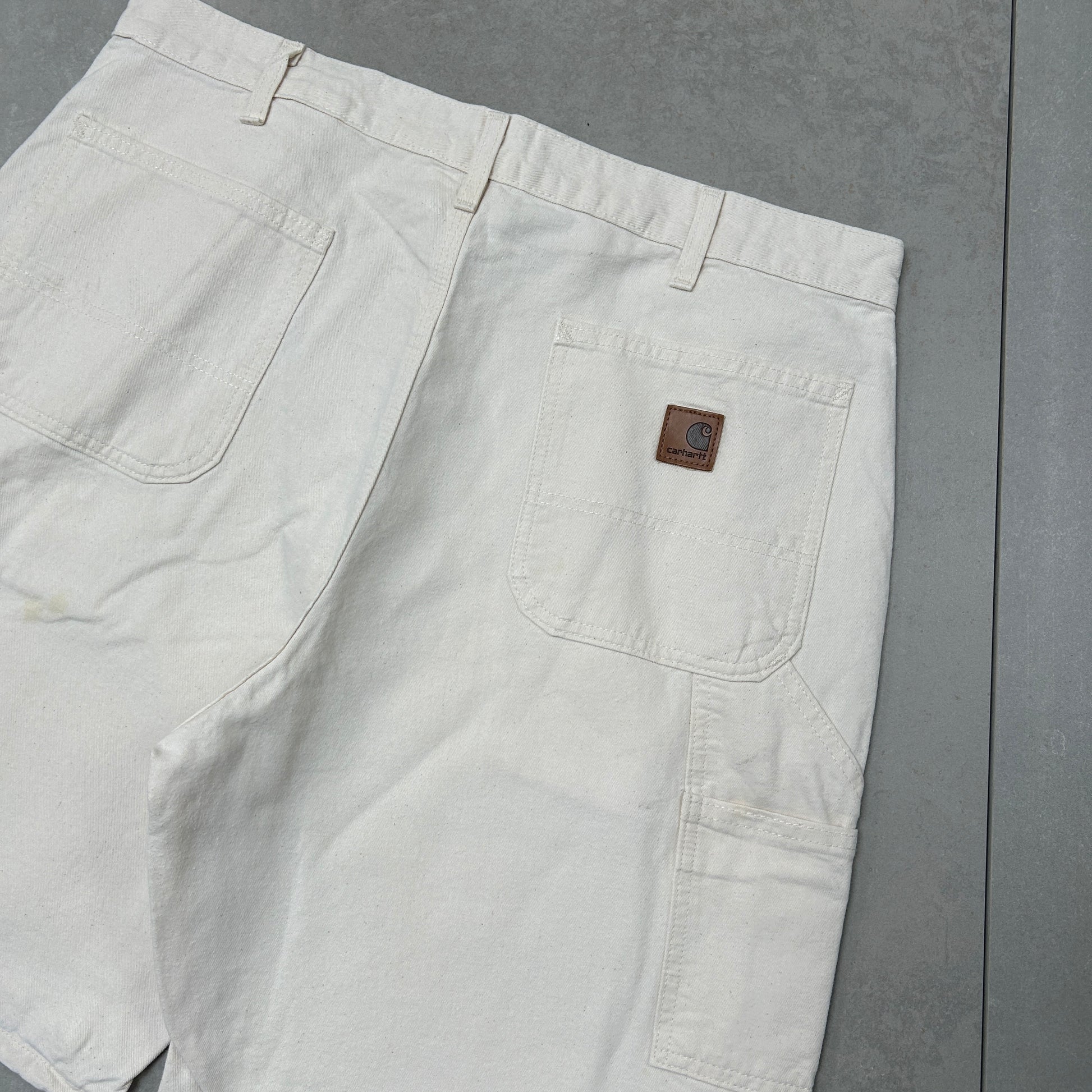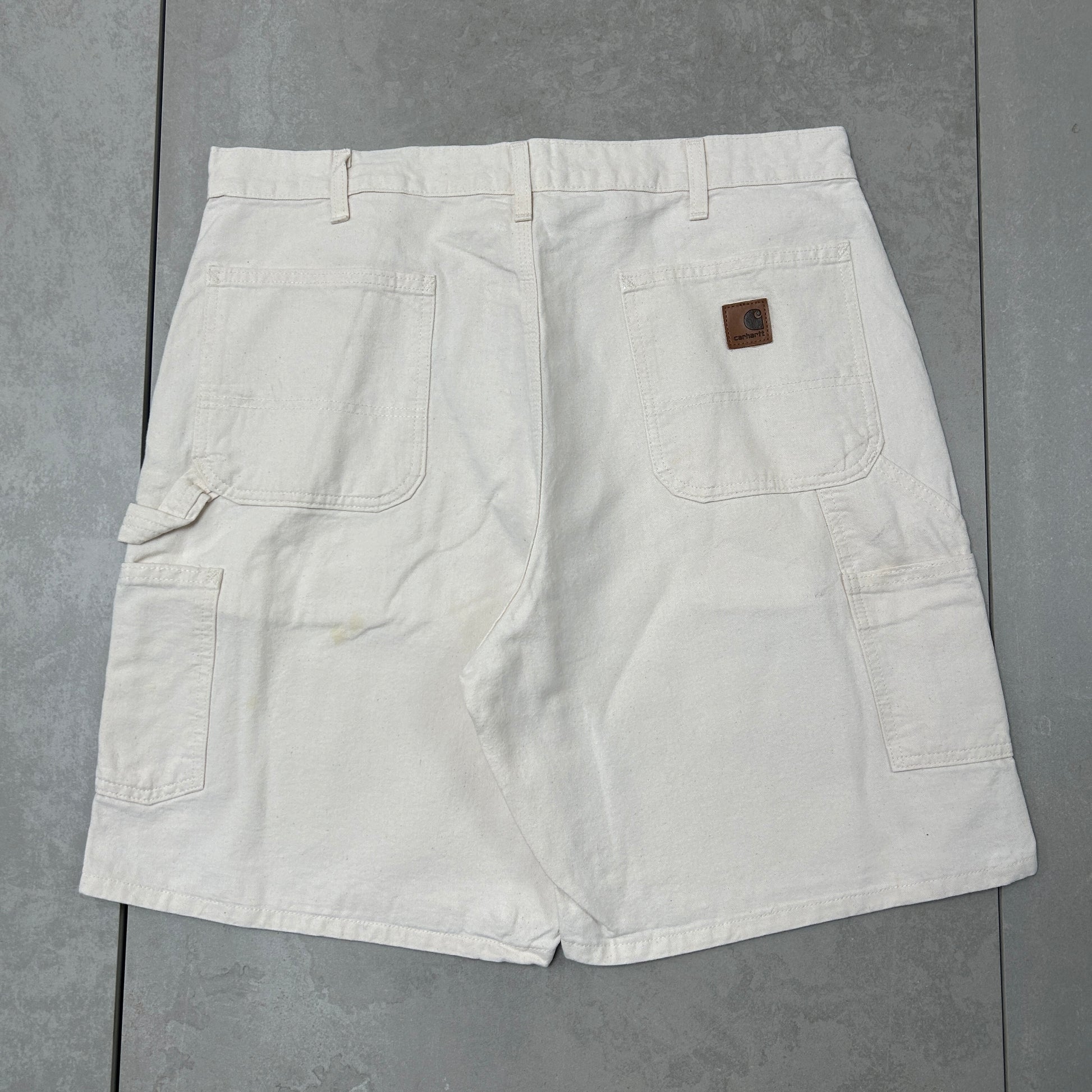Vintage Carhartt Workwear Baggy Cream Carpenter Shorts - 38