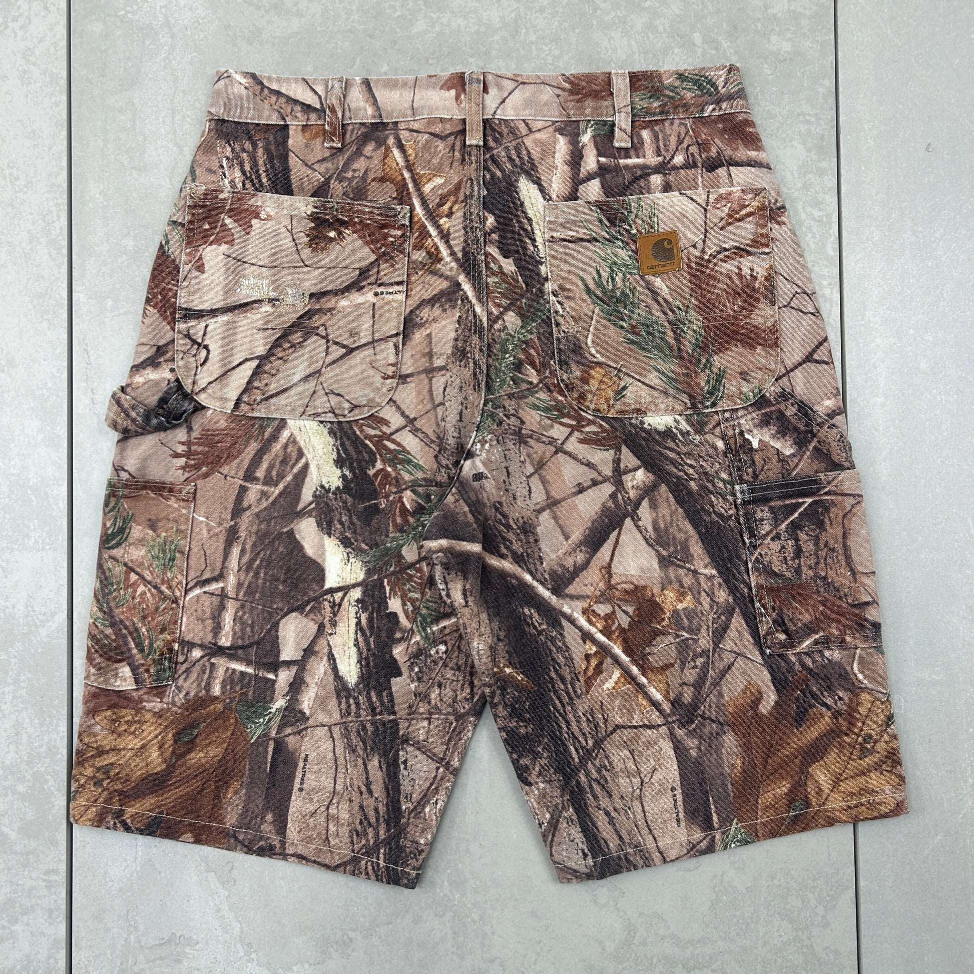 Vintage Carhartt Workwear Brown Realtree Camo Baggy Carpenter Shorts - 33