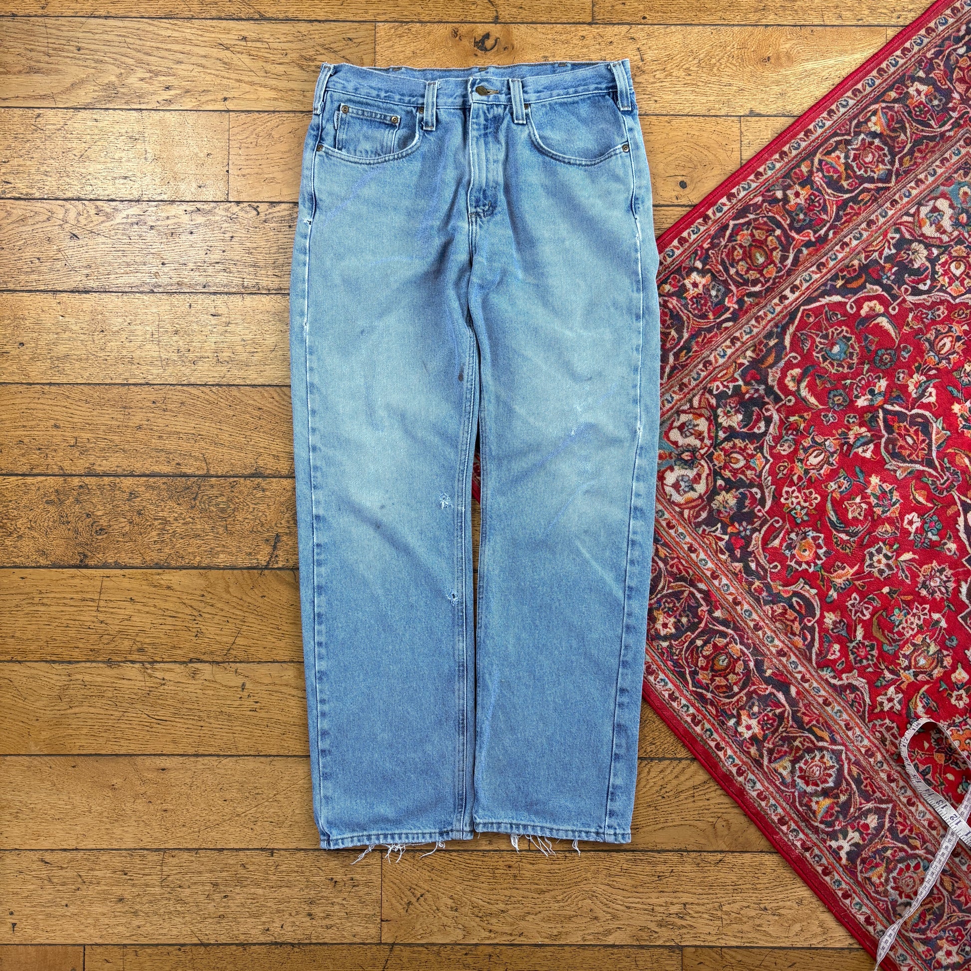 Vintage Carhartt Workwear Carpenter Baggy Blue Jeans - 34