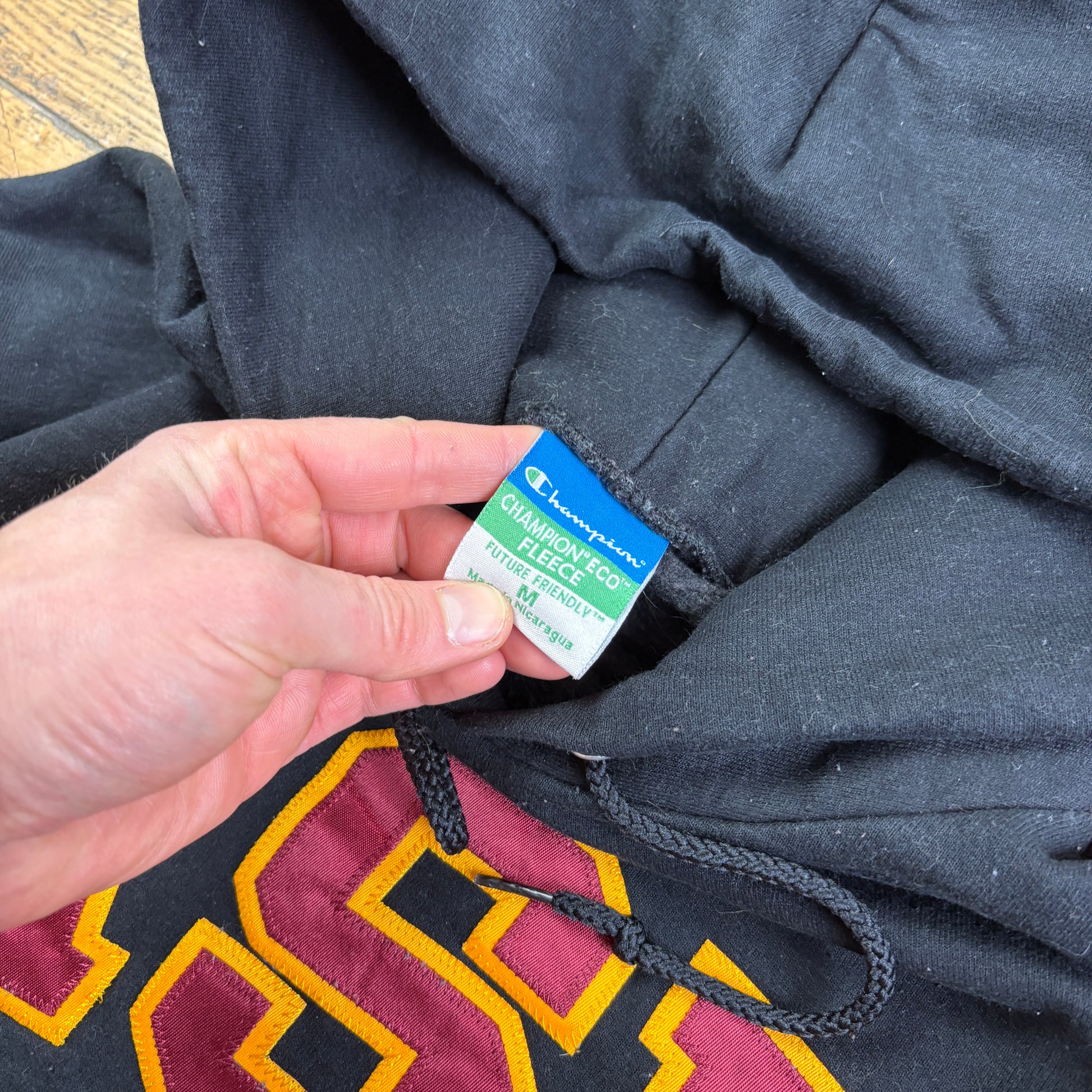 Vintage Champion Black USA College Boxy Hoodie Embroidered Sweatshirt - M