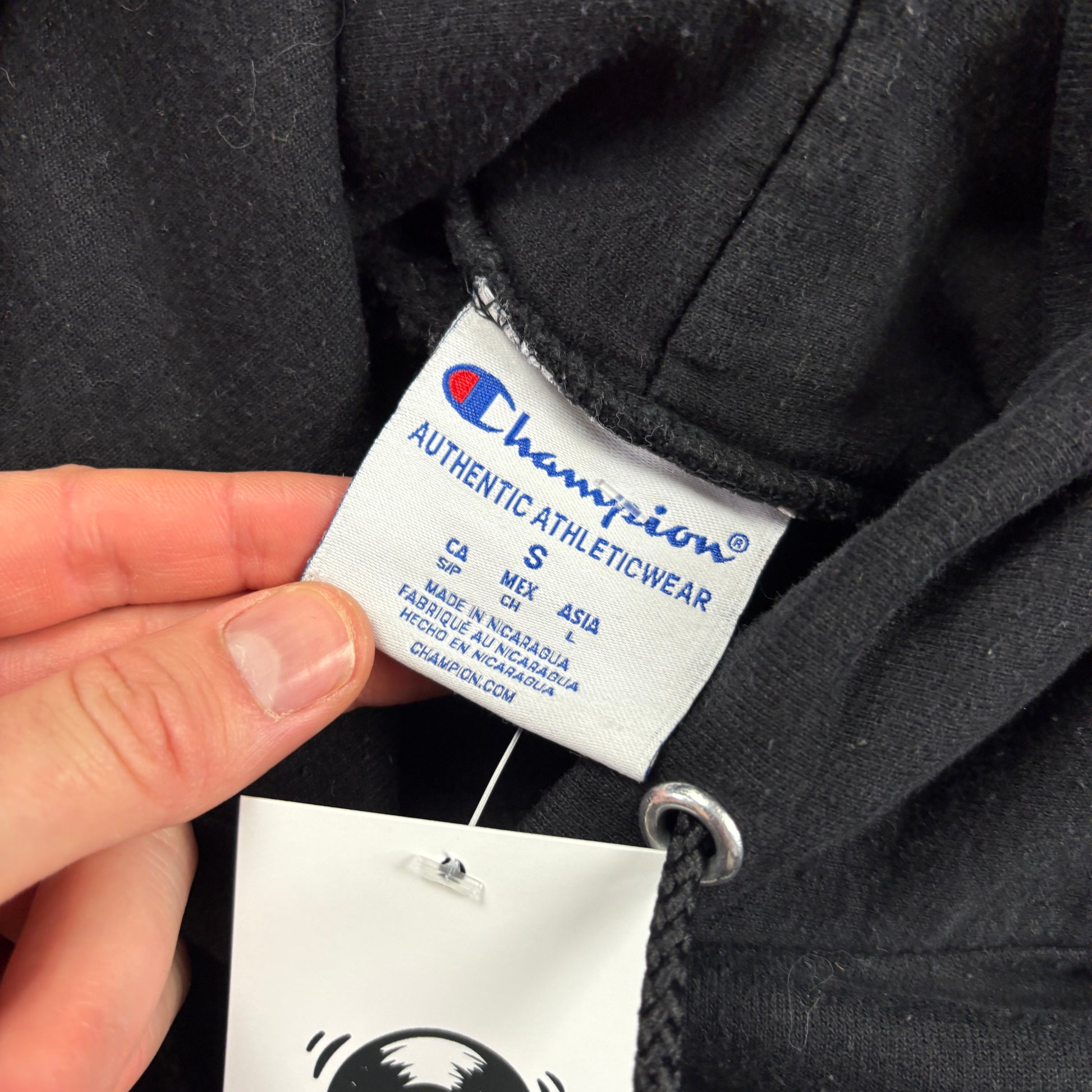 Vintage Champion Black USA College Embroidered Hoodie Sweatshirt - S