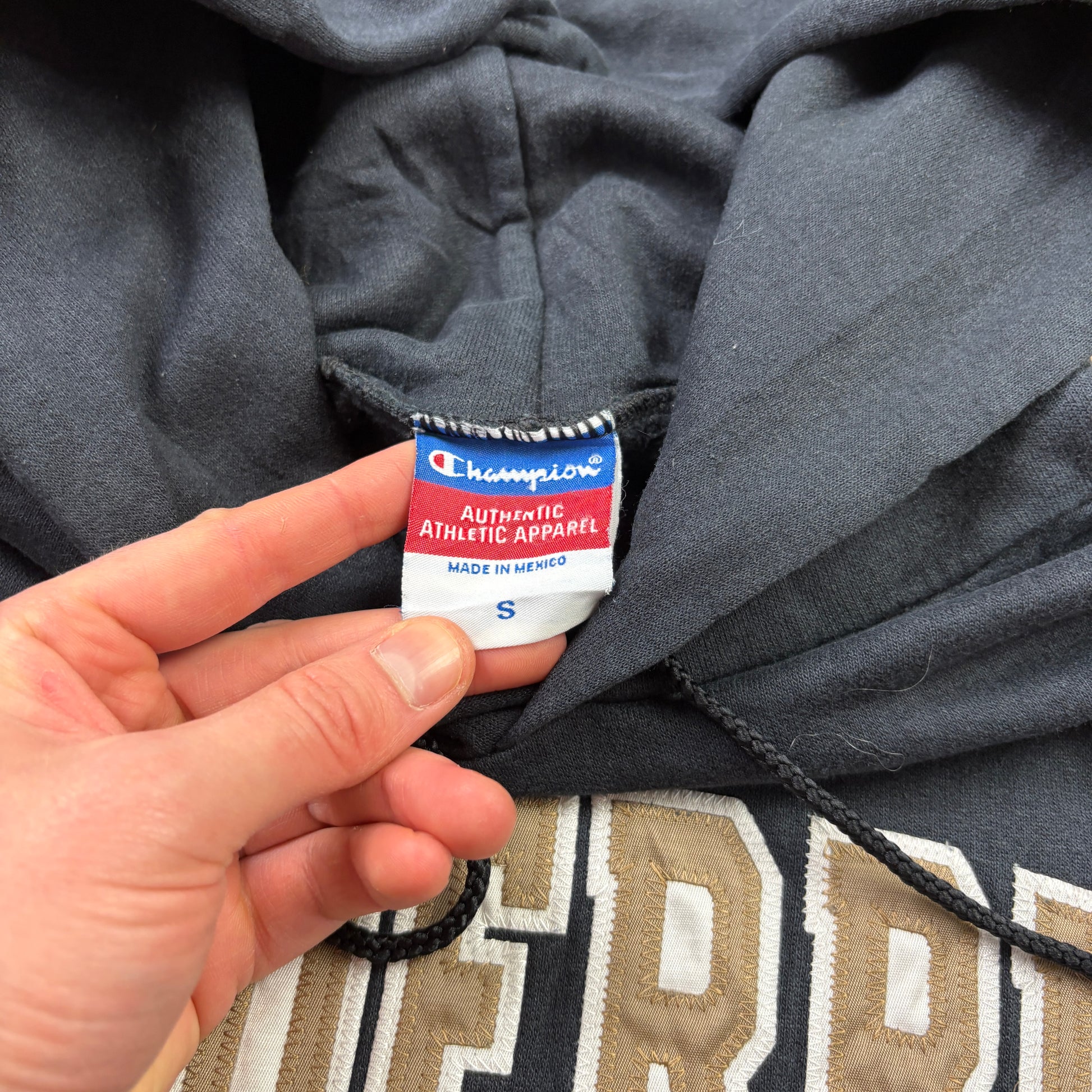Vintage Champion Black USA College Hoodie Embroidered Sweatshirt - S