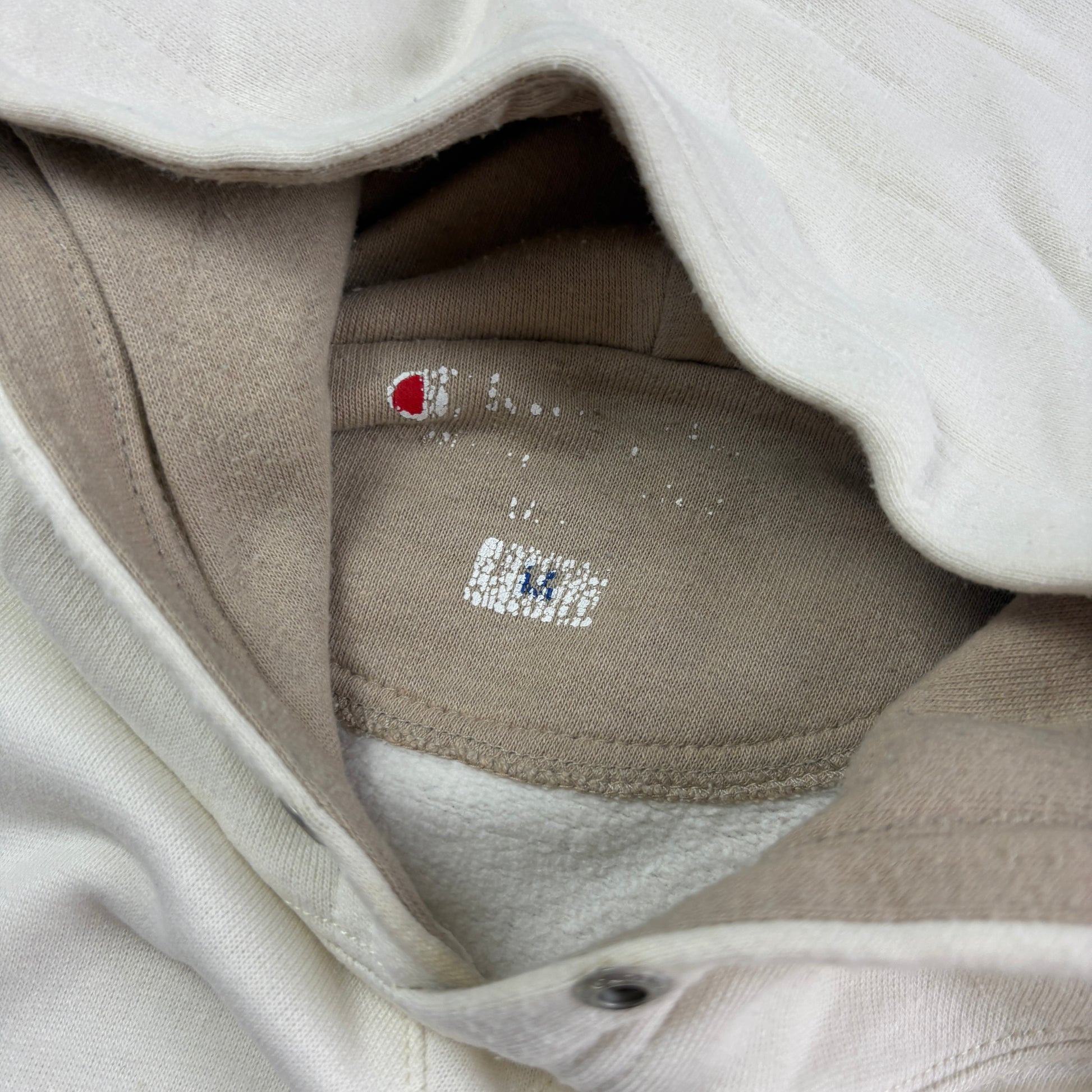 Vintage Champion Cream White Embroidered Hoodie Sweatshirt - M