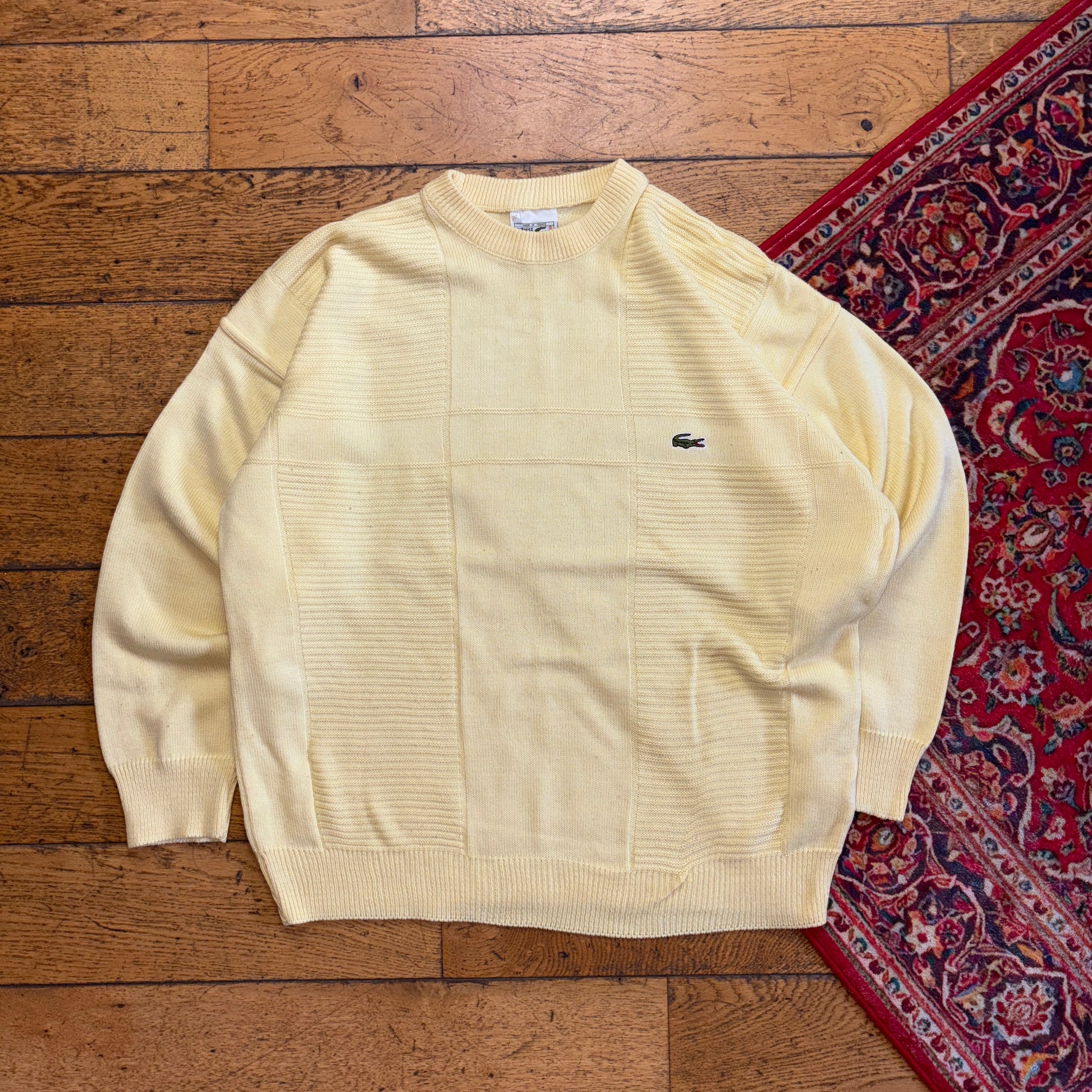 Vintage Chemiste Lacoste Yellow Cable Knit Jumper - XL