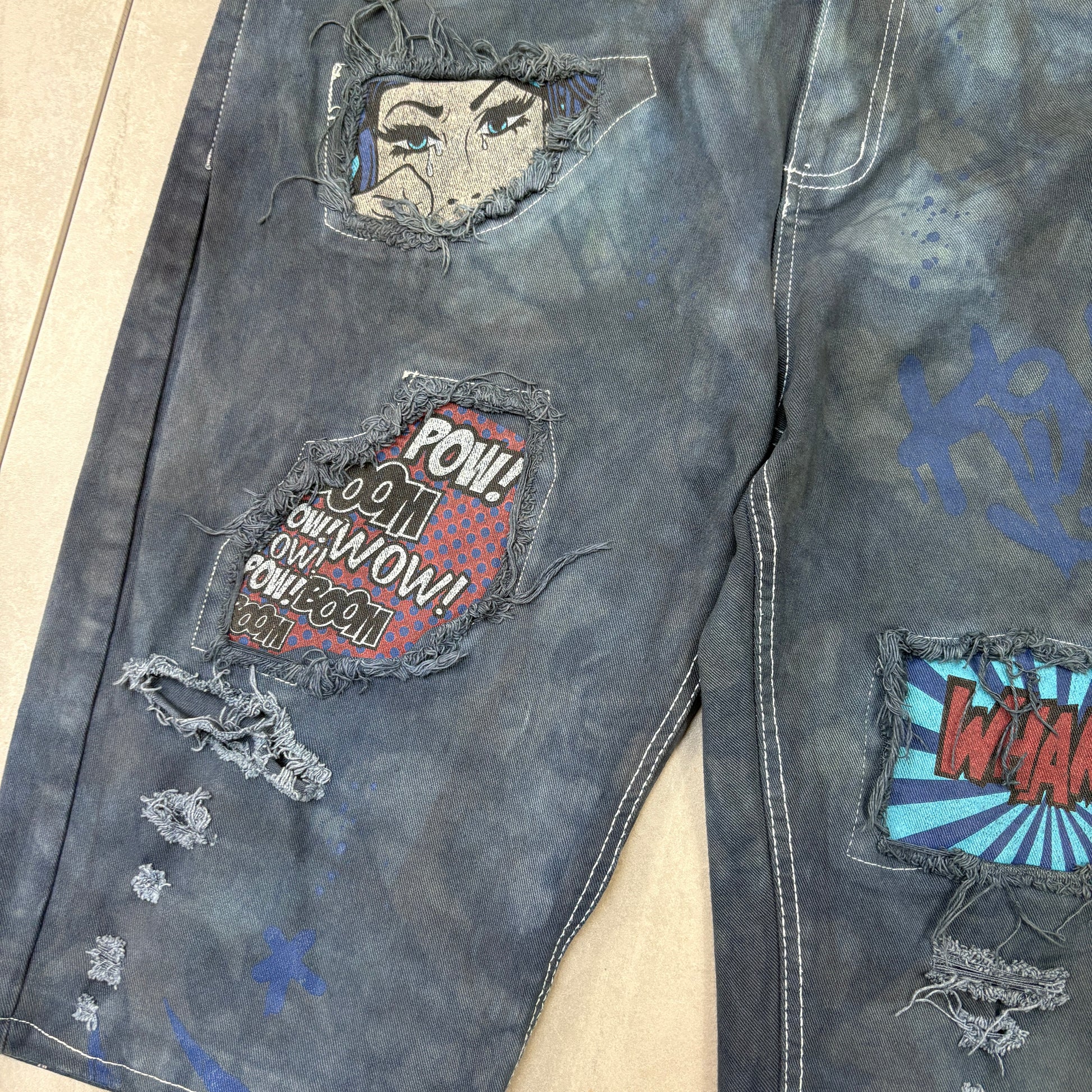 Contrast stitch true religion JNCO Coogi Southpole akademics Fubu skate rocawear embroidered denim jeans jorts skatewear surfwear carpenter cargo japanese denim