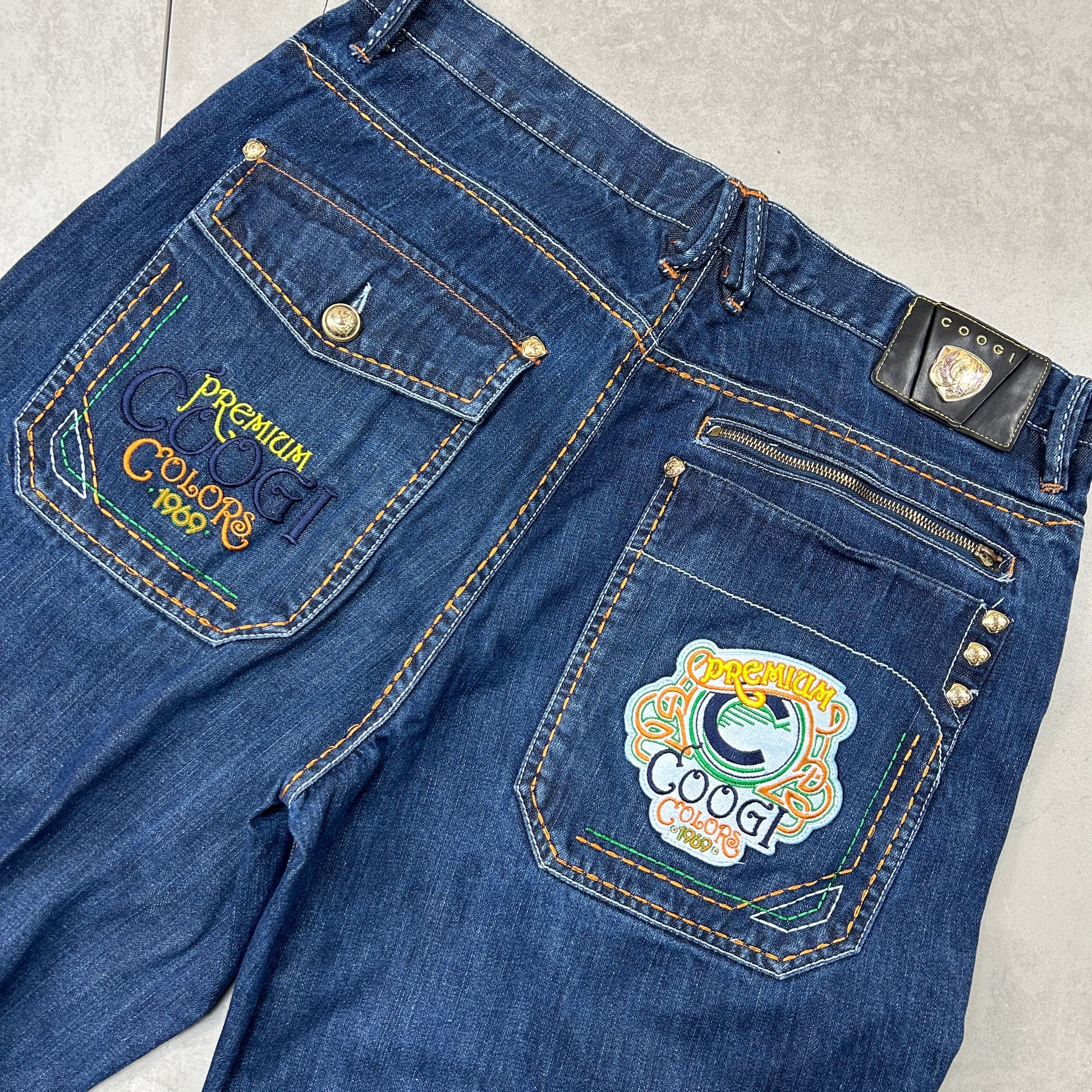 Contrast stitch true religion JNCO Coogi Southpole akademics Fubu skate rocawear embroidered denim jeans jorts skatewear surfwear carpenter cargo japanese denim