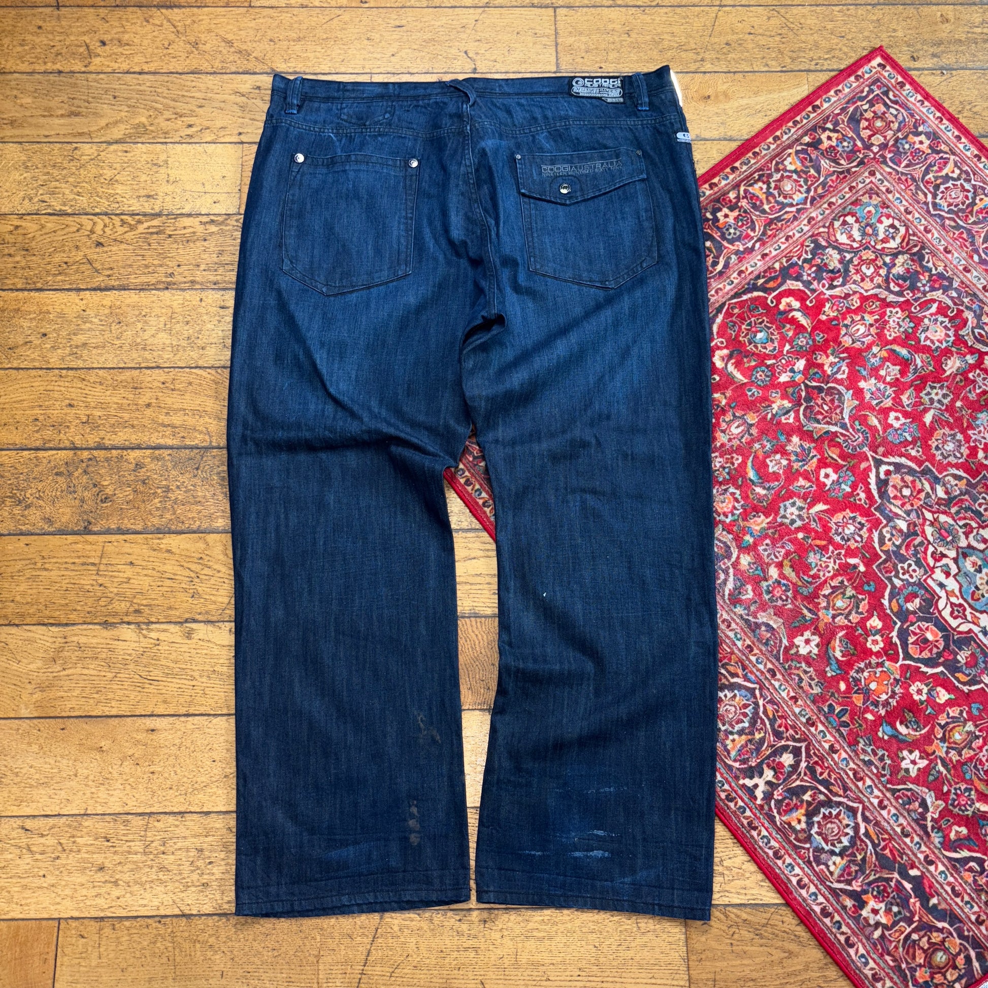 Vintage Coogi Navy Blue Embroidered Y2K Hip Hop Baggy Jeans - 48L