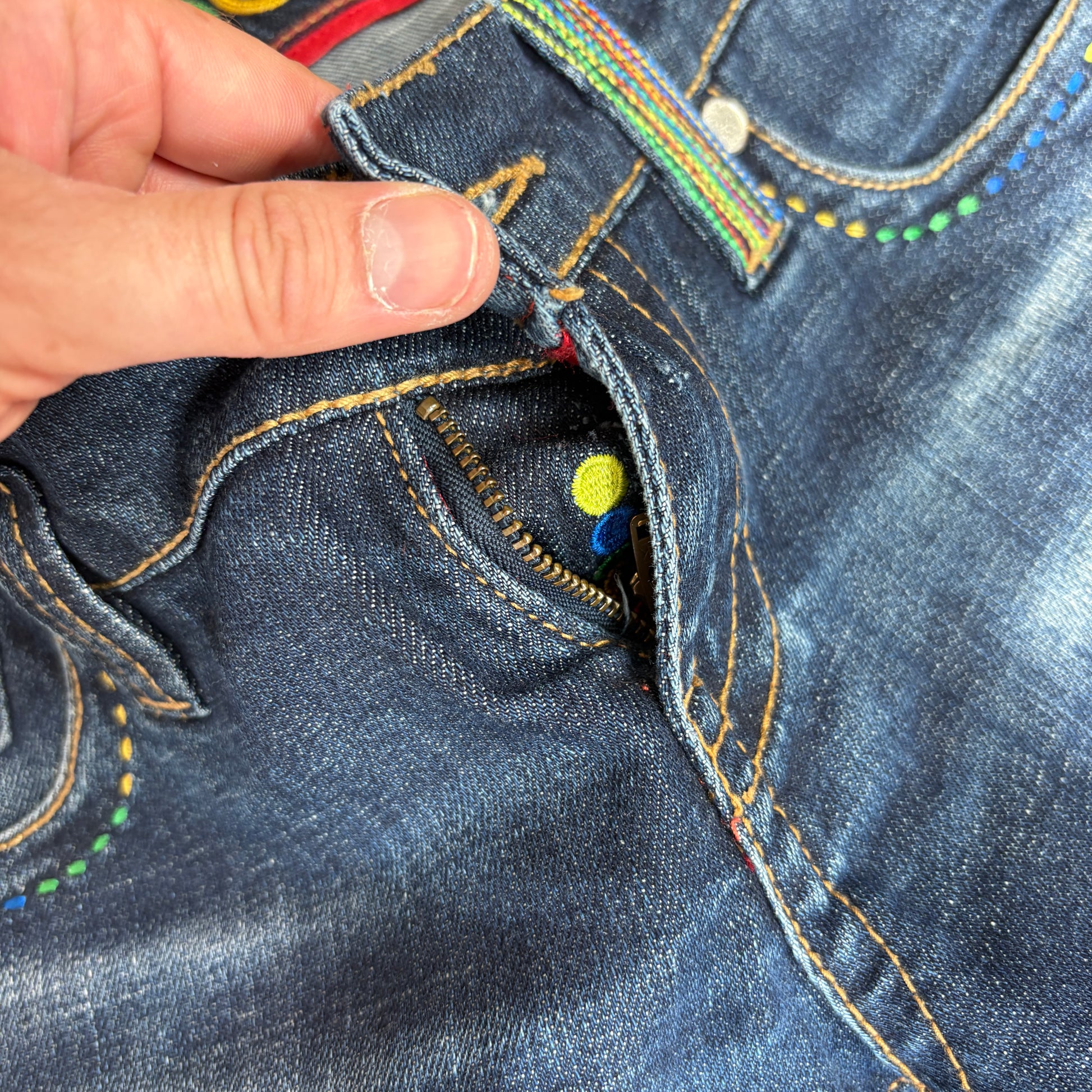Contrast stitch true religion JNCO Coogi Southpole akademics Fubu skate rocawear embroidered denim jeans
