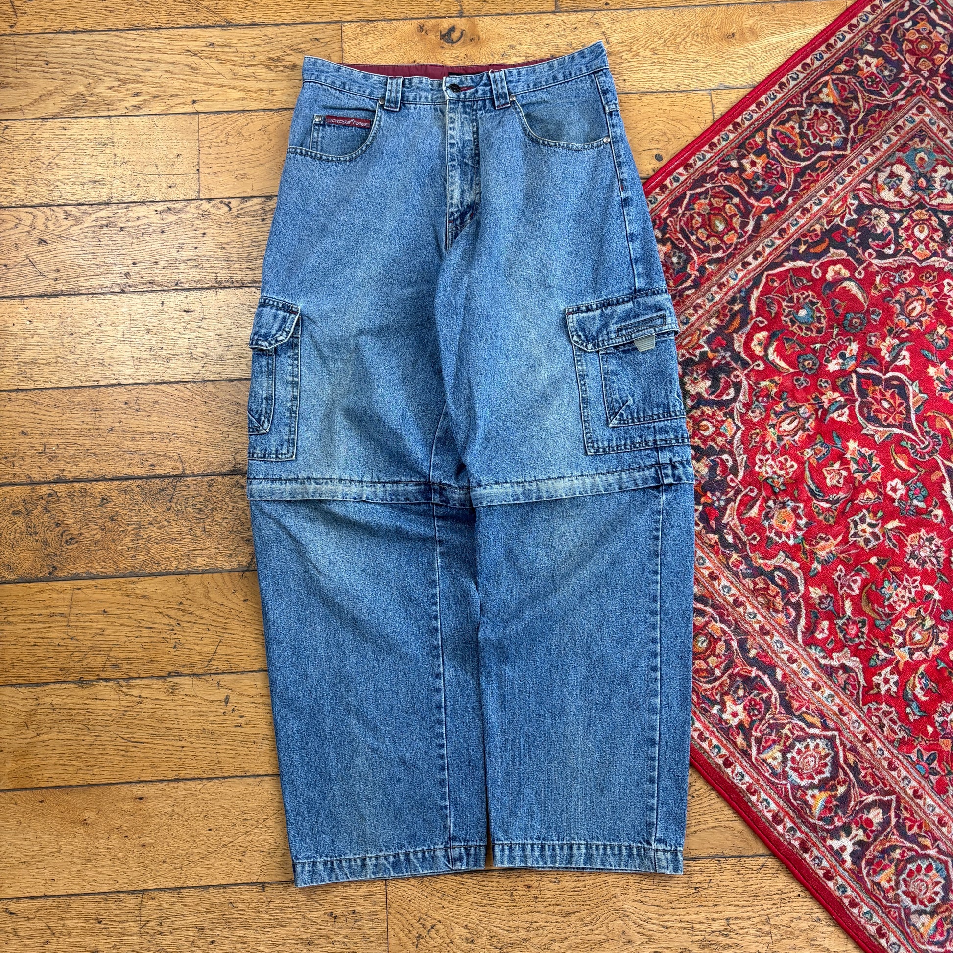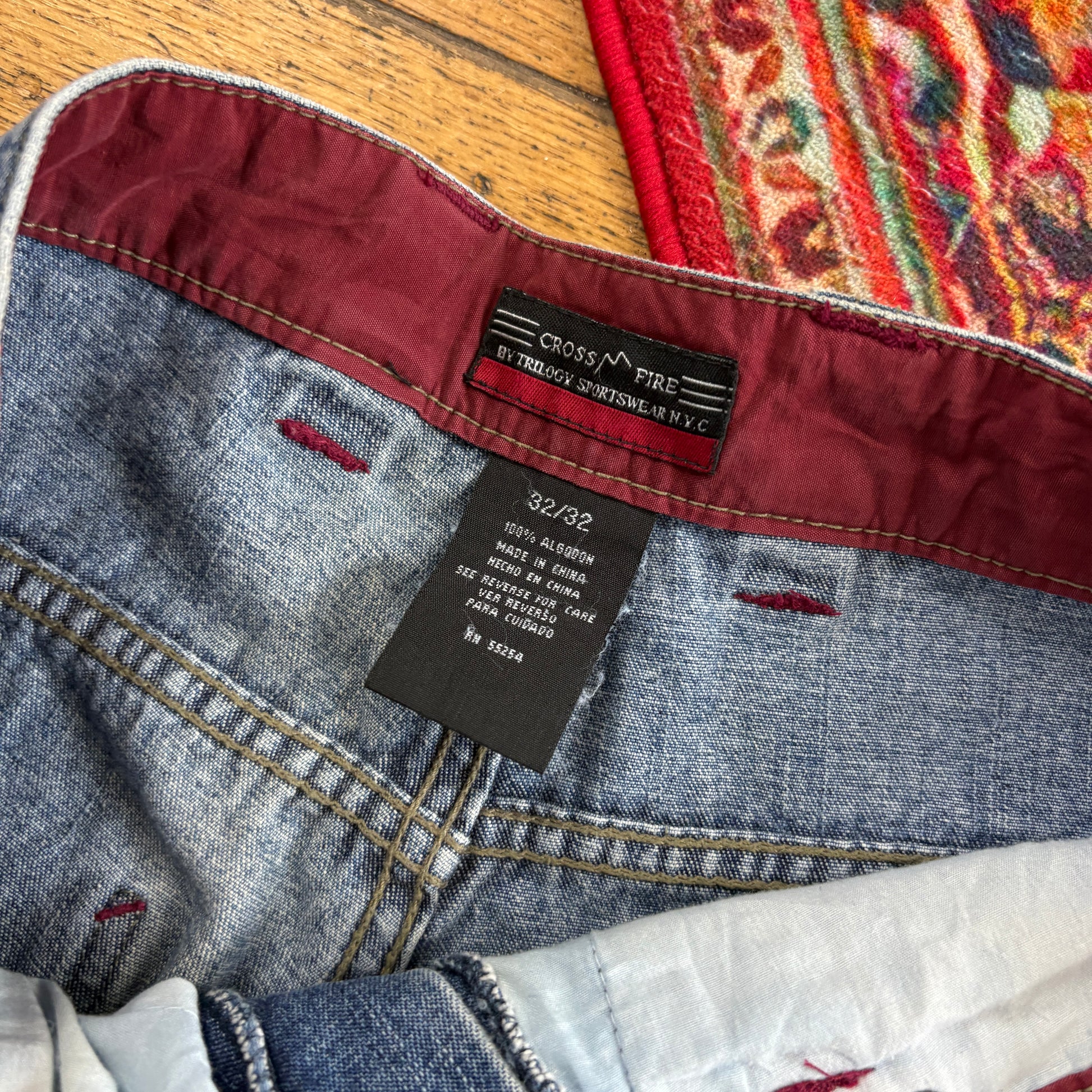 Vintage Crossfire Cargo Carpenter Blue Embroidered Y2K Hip Hop Baggy Jeans - 32