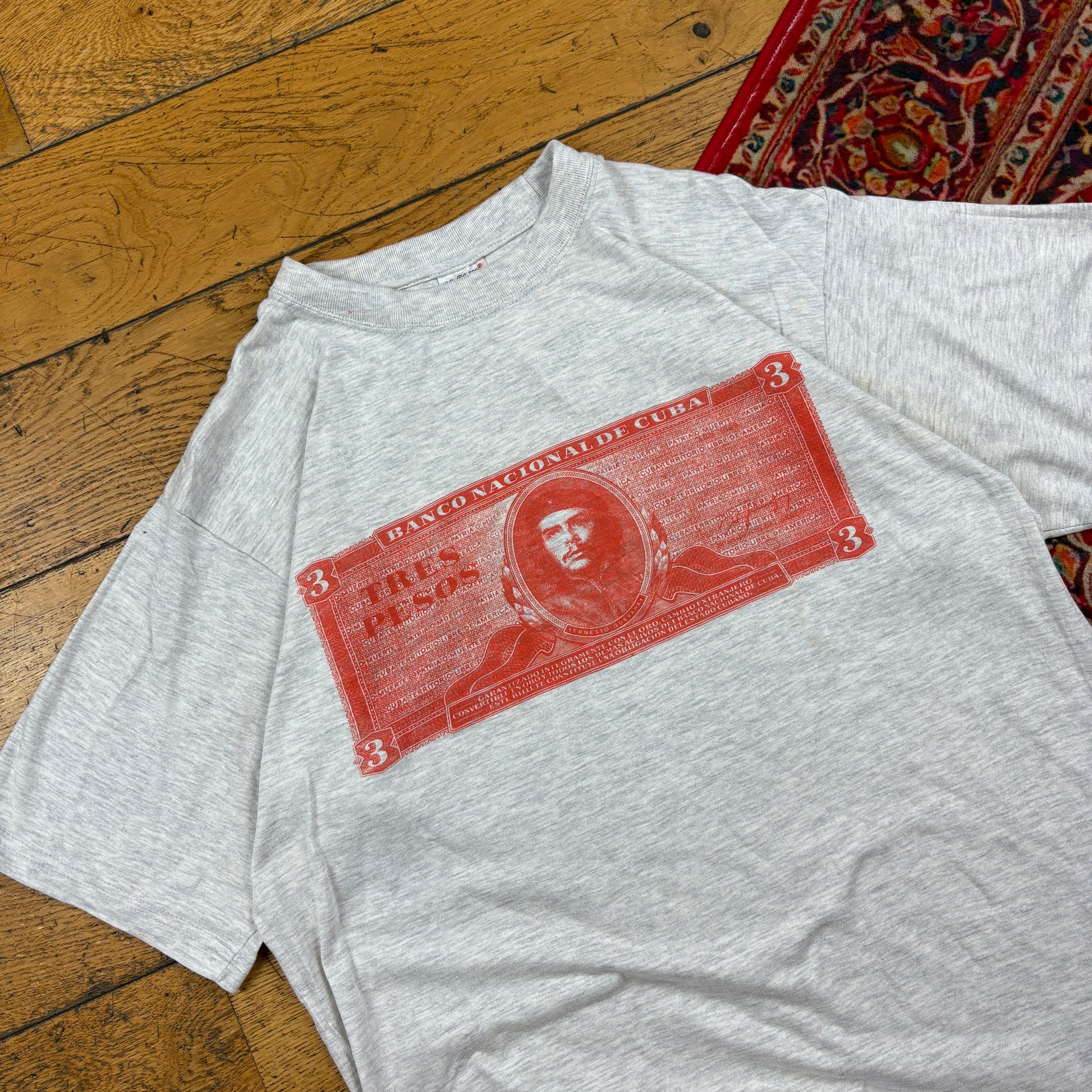 Vintage Cuban Pesos Grey Graphic T-Shirt - M