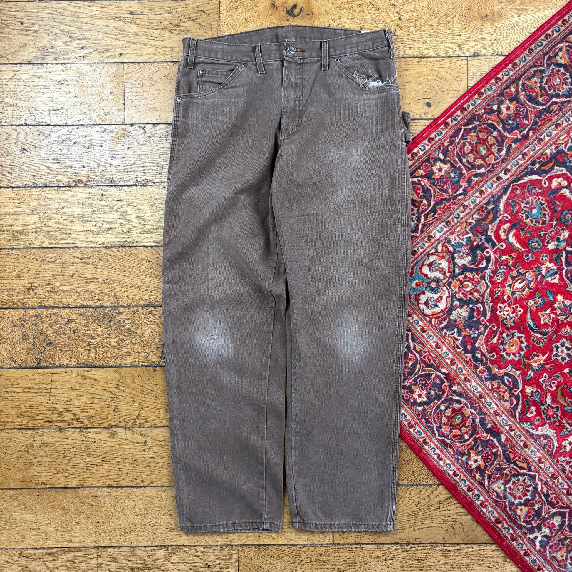 Vintage Dickies Brown Workwear Carpenter Baggy Trousers - 32