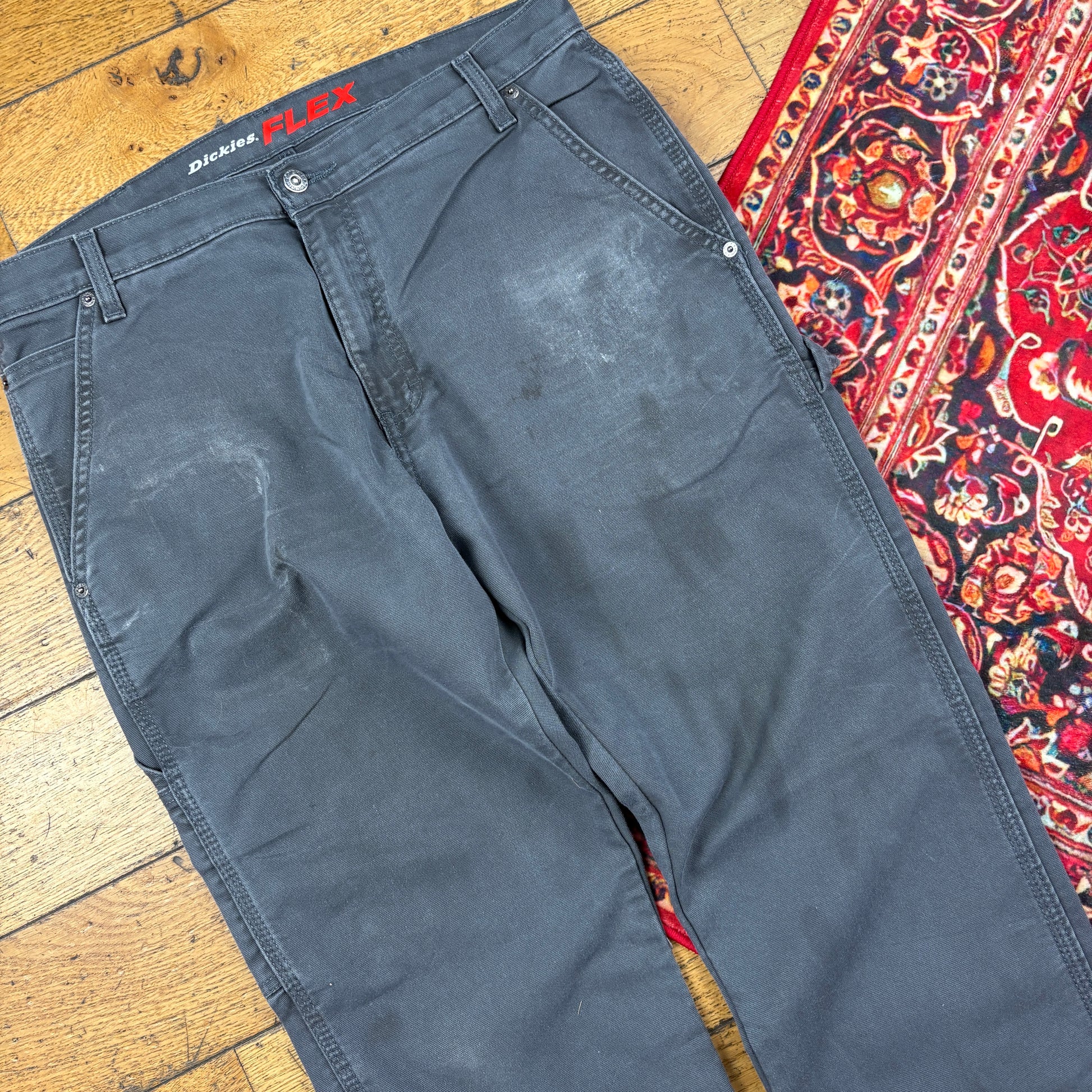 Vintage Dickies Grey Workwear Carpenter Baggy Trousers - 35