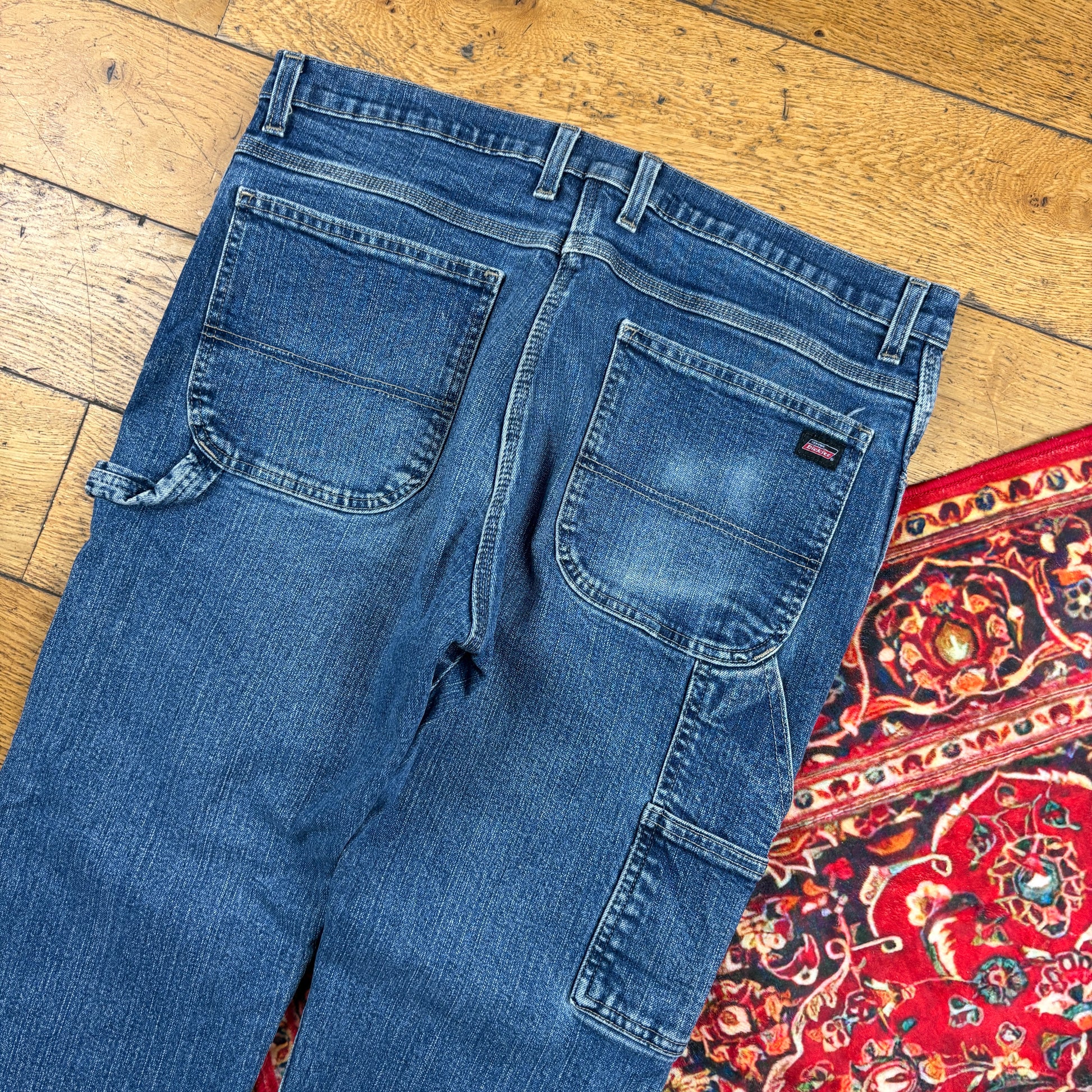 Vintage Dickies Workwear Carpenter Baggy Blue Trousers - 36