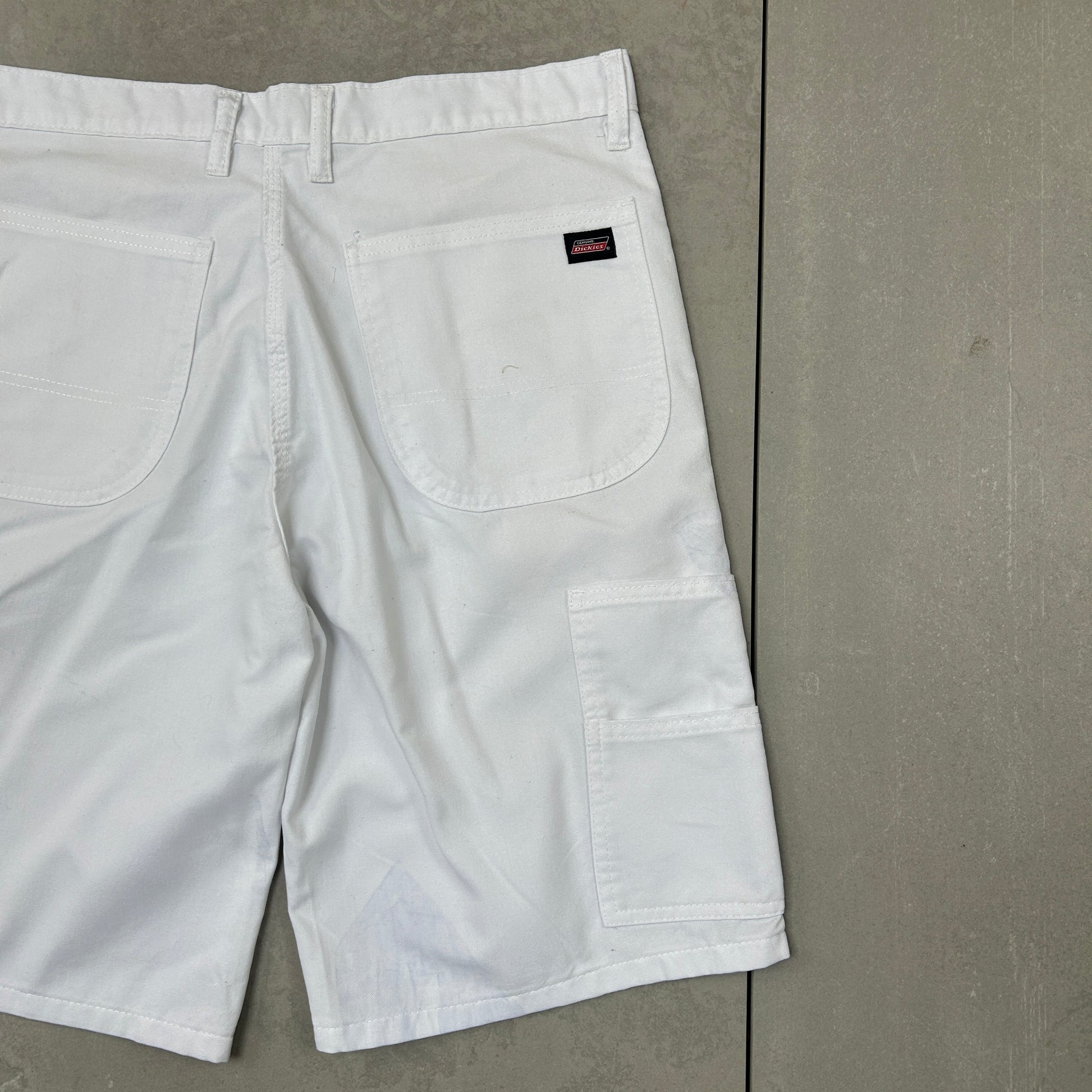 Vintage Dickies Workwear Carpenter White Baggy Shorts - 34
