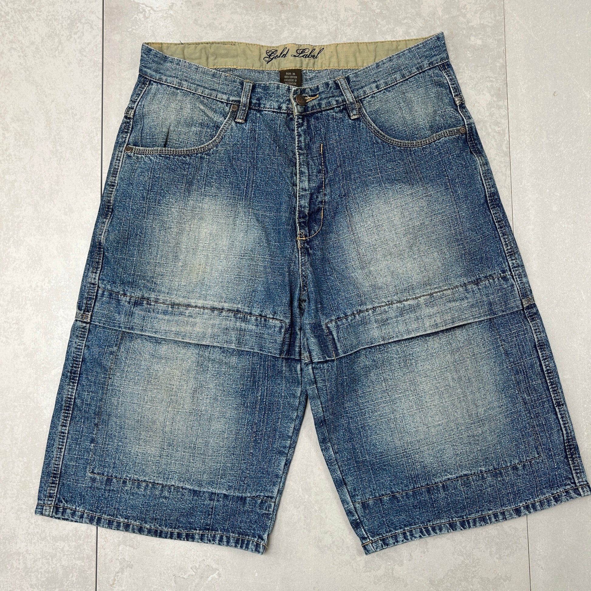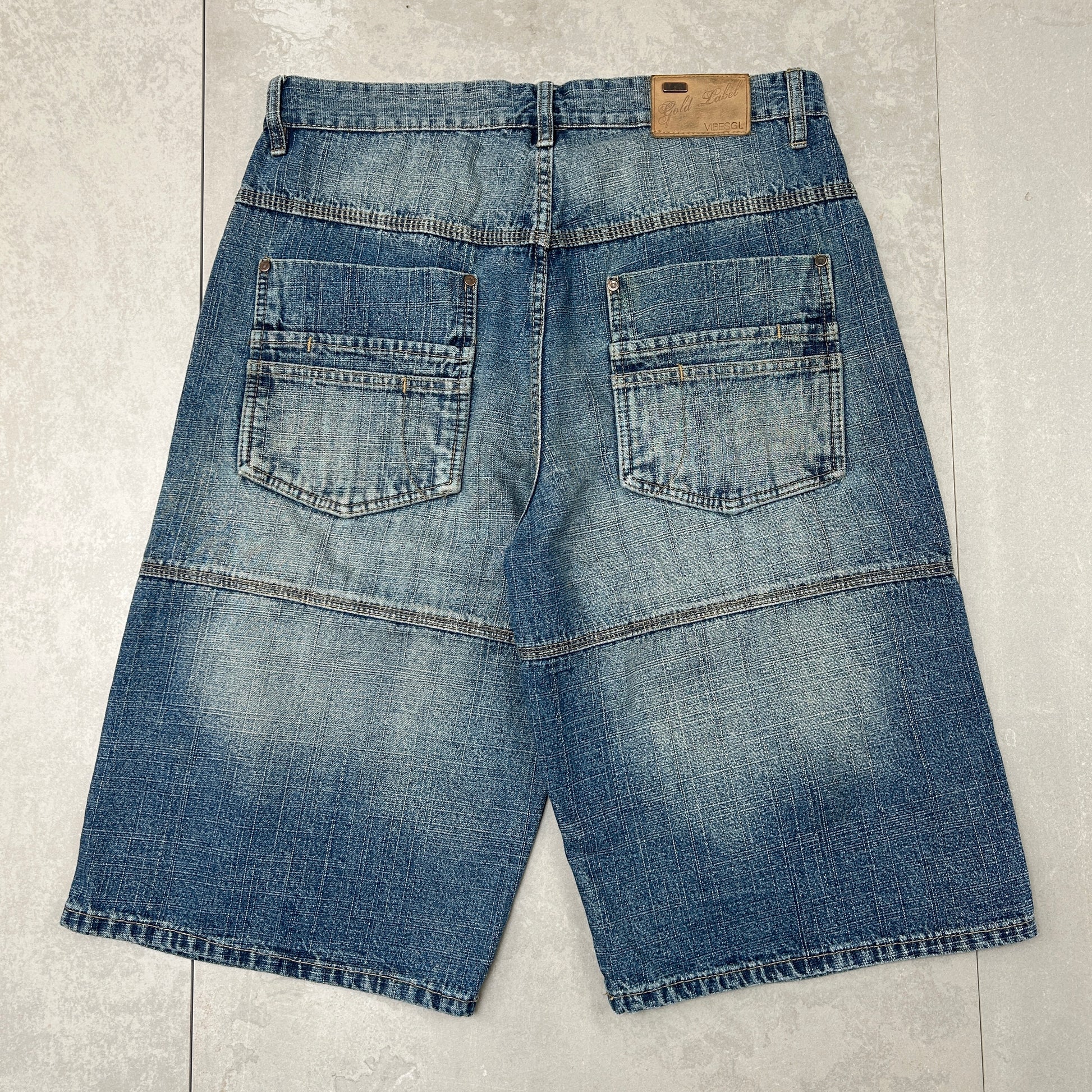 Vintage Double Knee Hip Hop Baggy Blue Shorts Jorts - 36