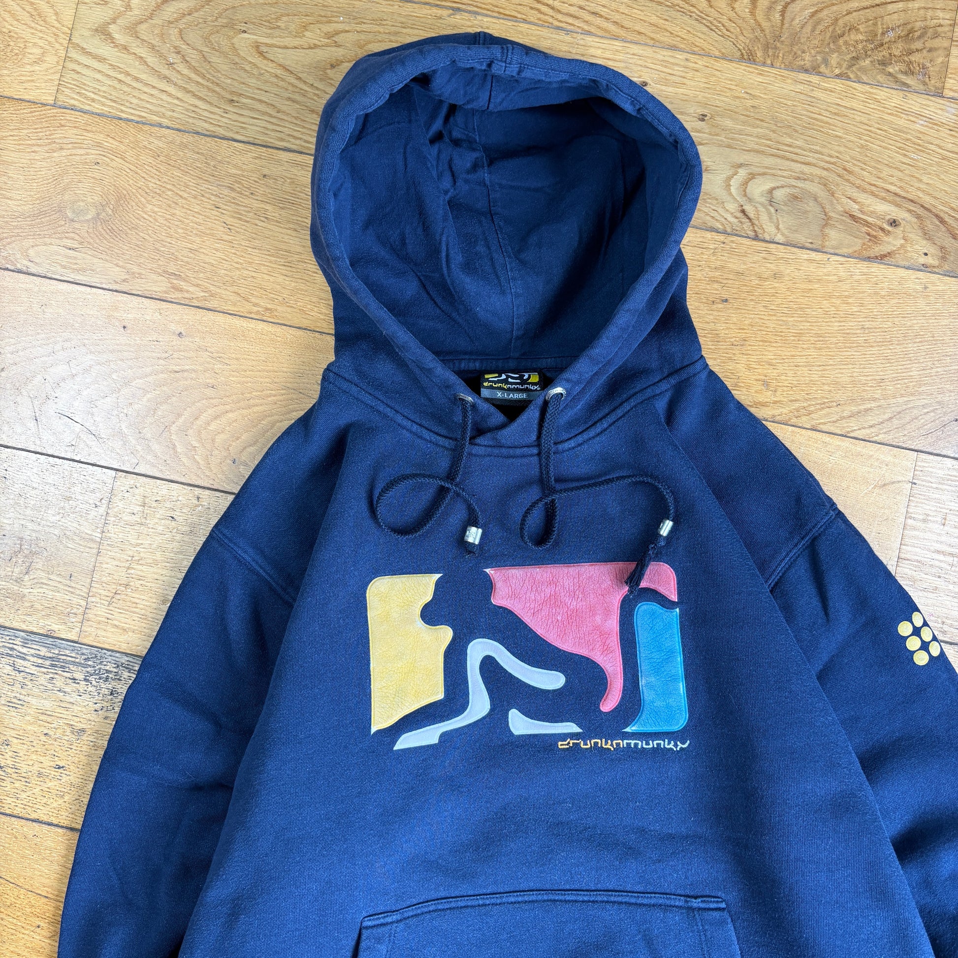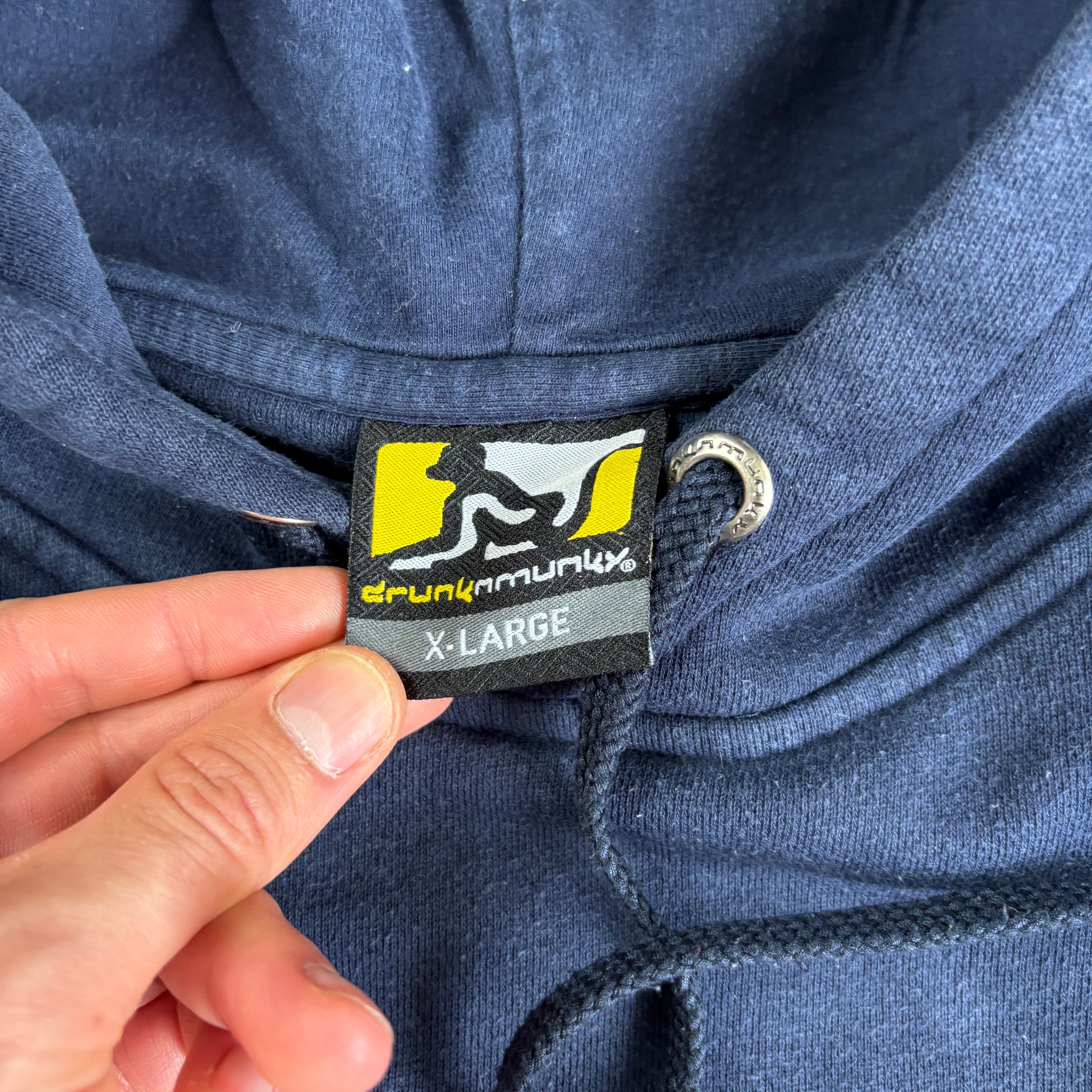 Vintage Drunknmunky Navy Embroidered Hoodie Boxy Sweatshirt - L