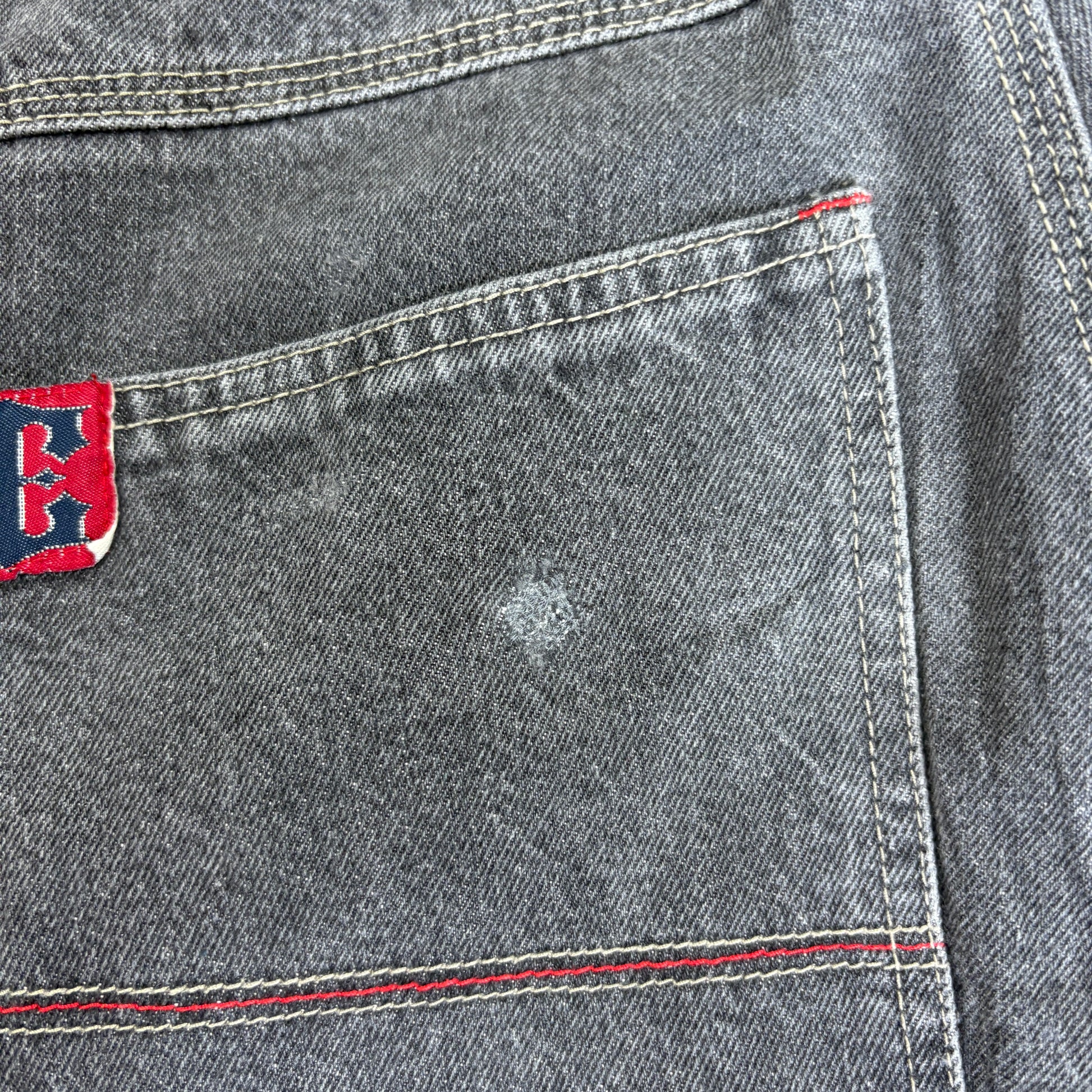 Contrast stitch true religion JNCO Coogi Southpole akademics Fubu skate rocawear embroidered denim jeans jorts skatewear surfwear carpenter cargo japanese denim