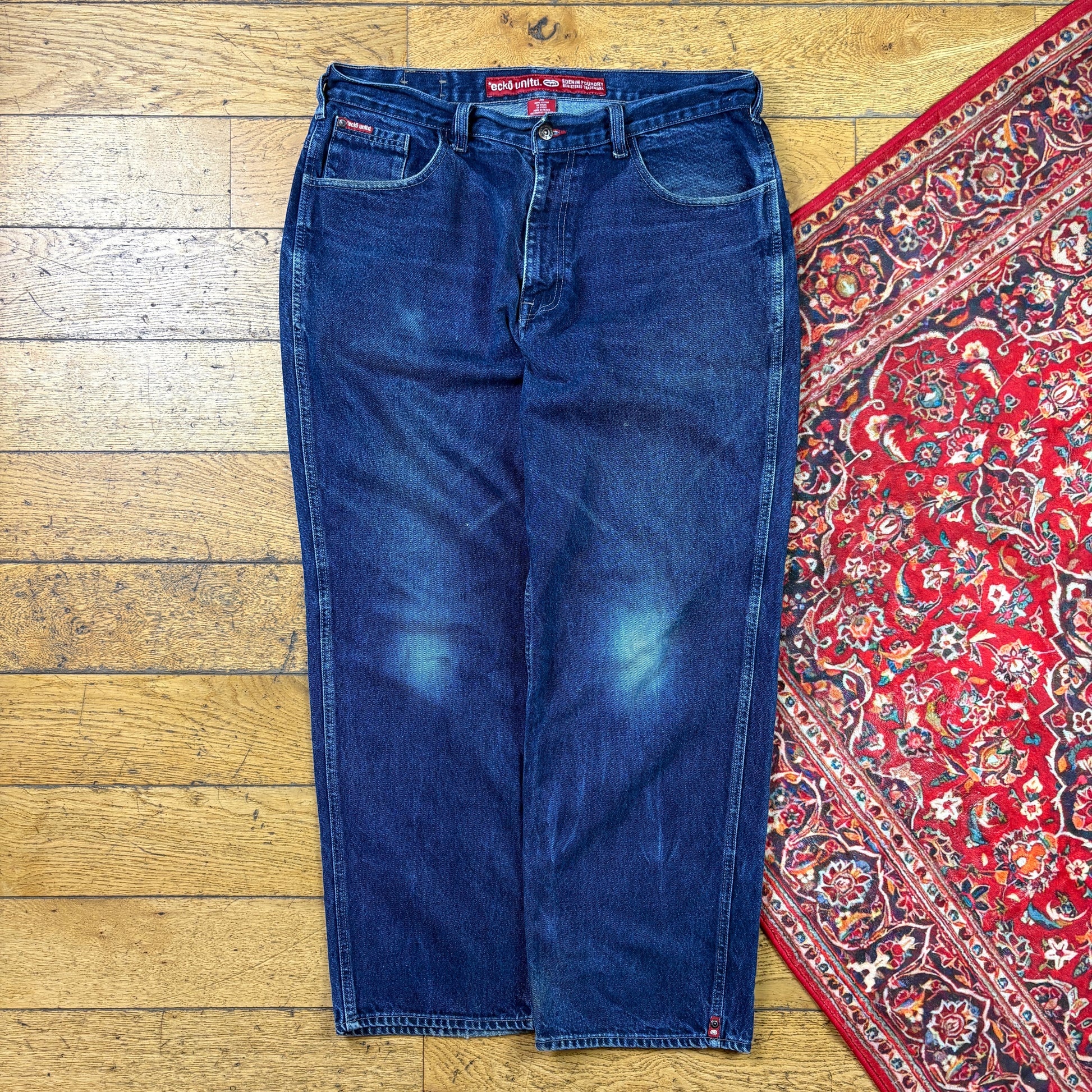 Vintage Ecko Unltd Blue Embroidered Y2K Hip Hop Baggy Jeans - 38