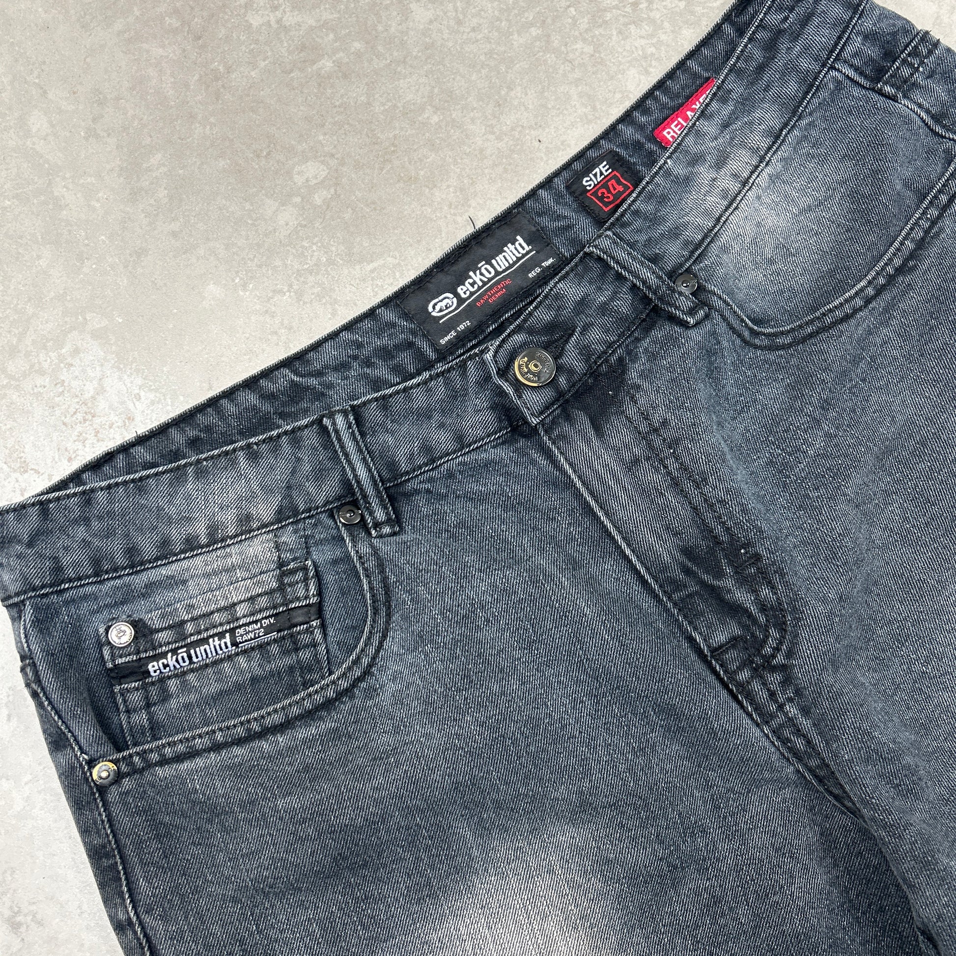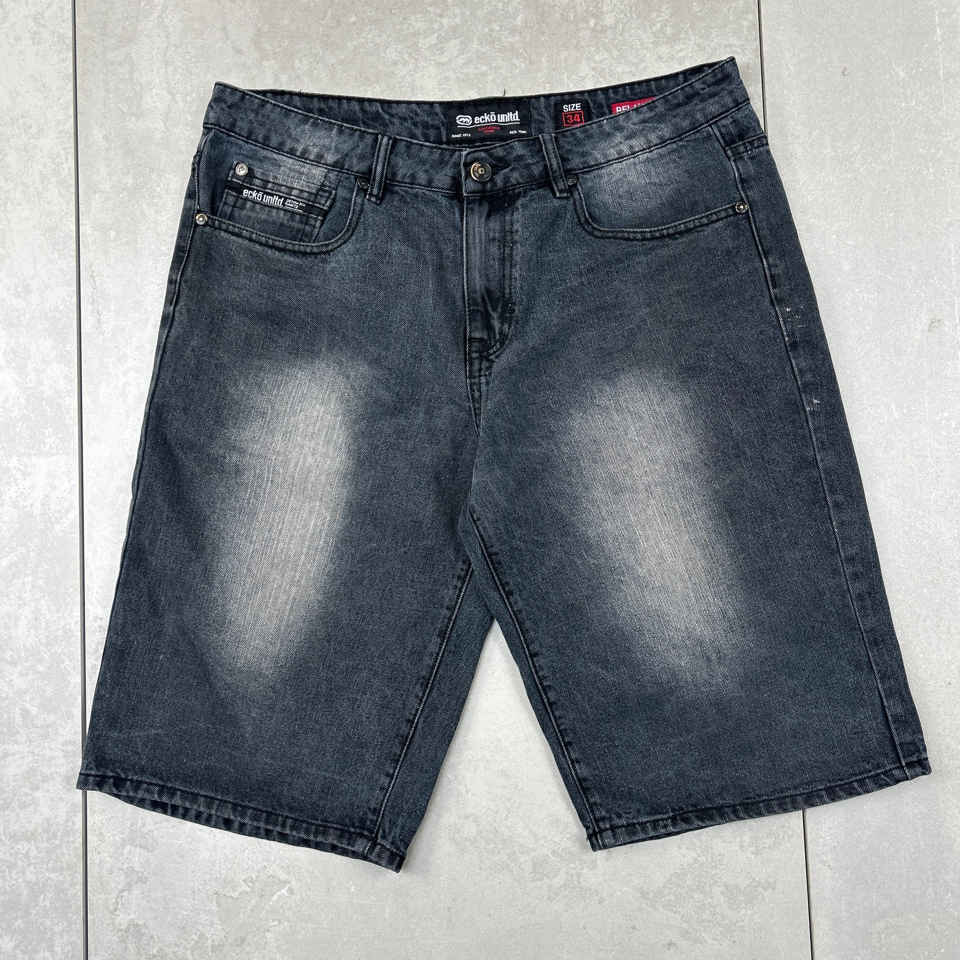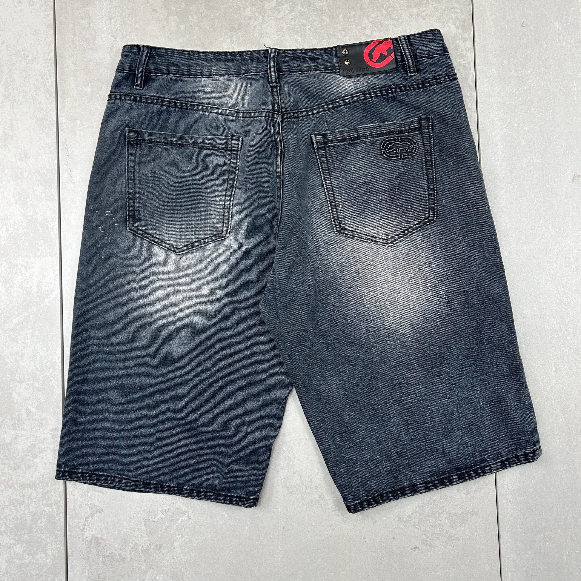 Vintage Ecko Unltd Embroidered Hip Hop Baggy Black Shorts Jorts - 36