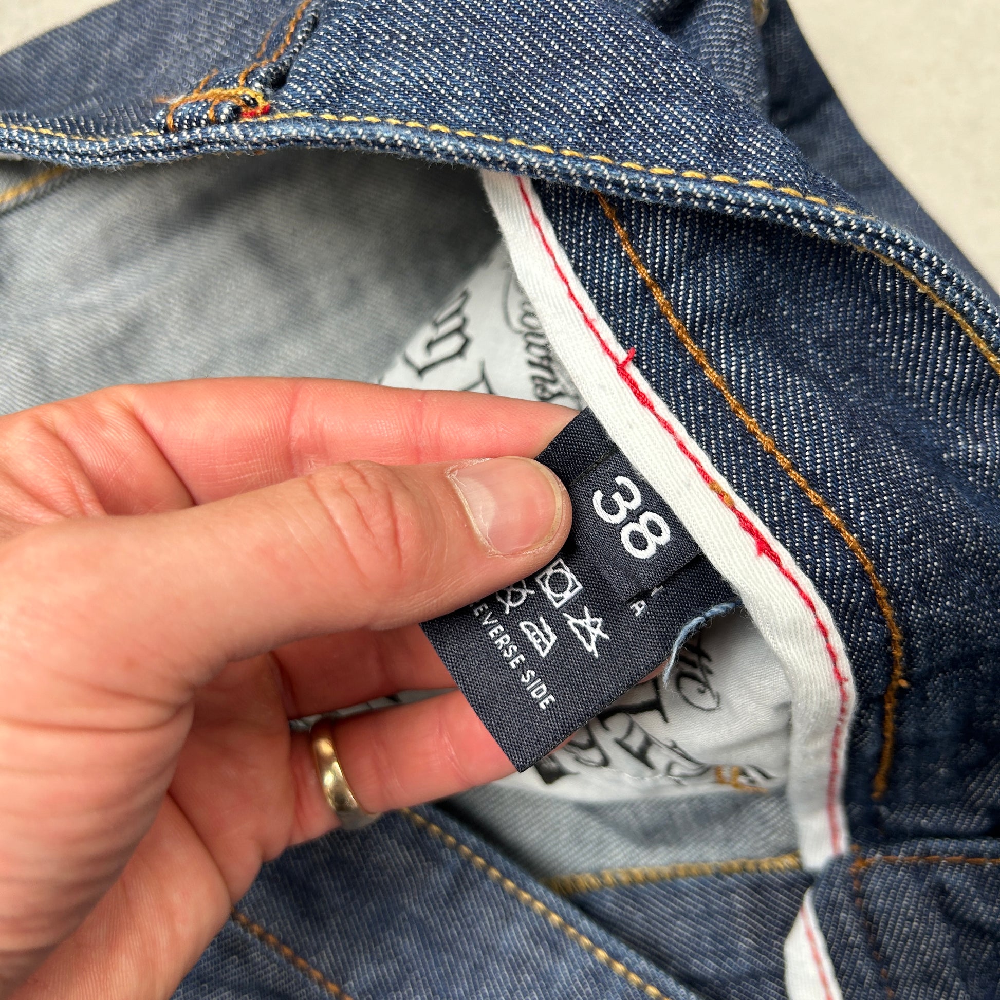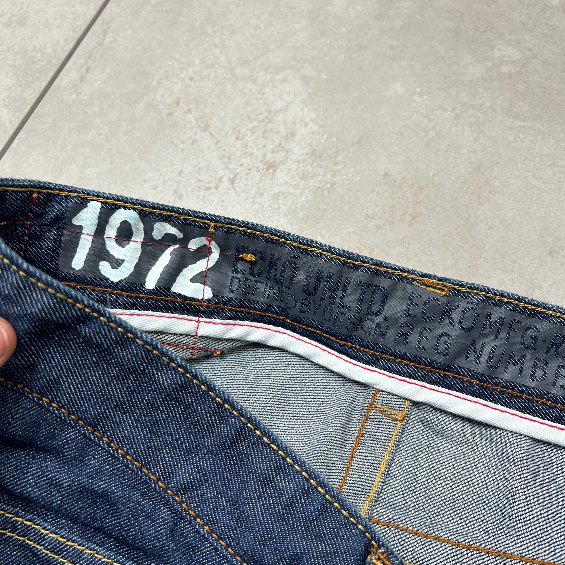 Contrast stitch true religion JNCO Coogi Southpole akademics Fubu skate rocawear embroidered denim jeans jorts skatewear surfwear carpenter cargo japanese denim