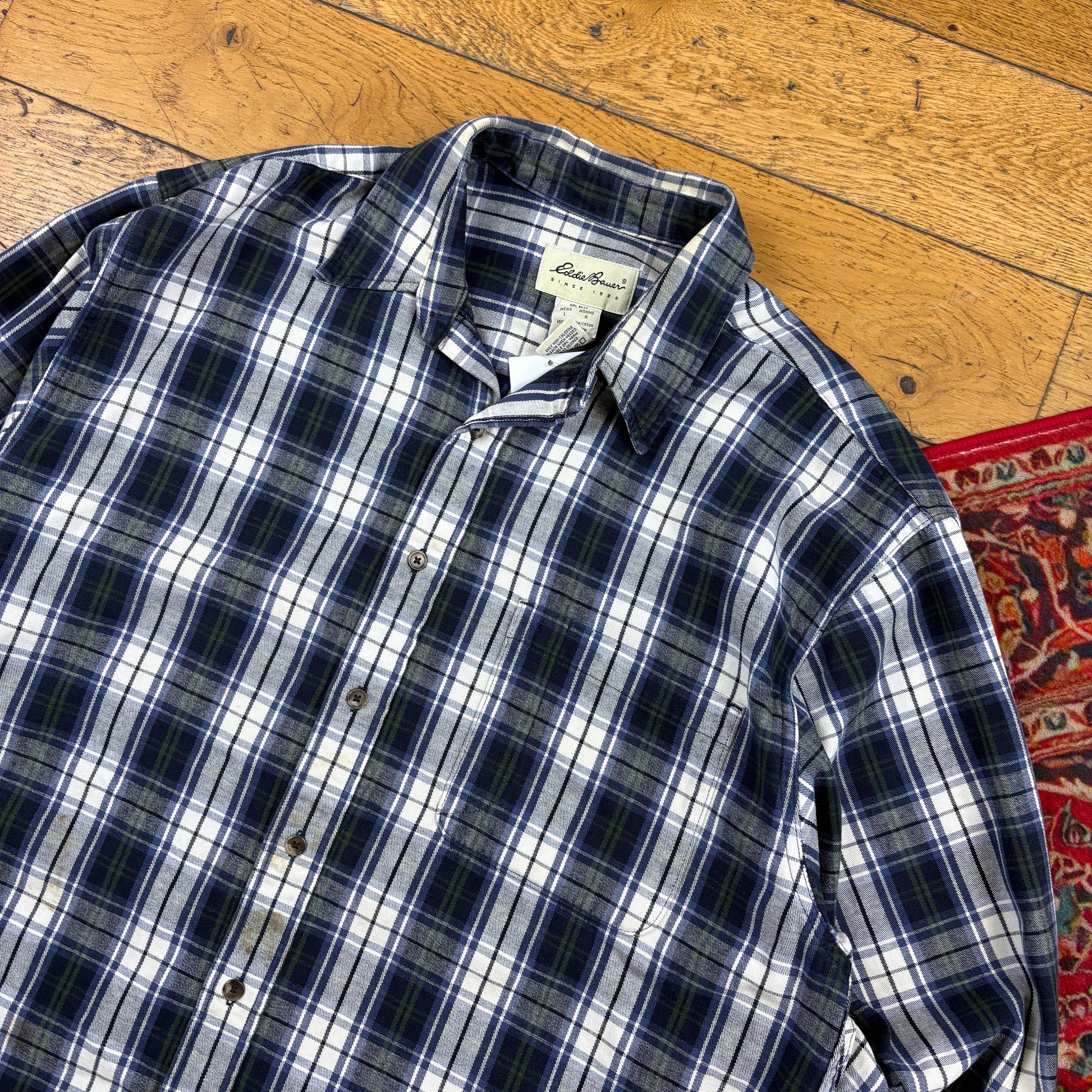 Vintage Eddie Bauer Blue White Green Check Shirt - L