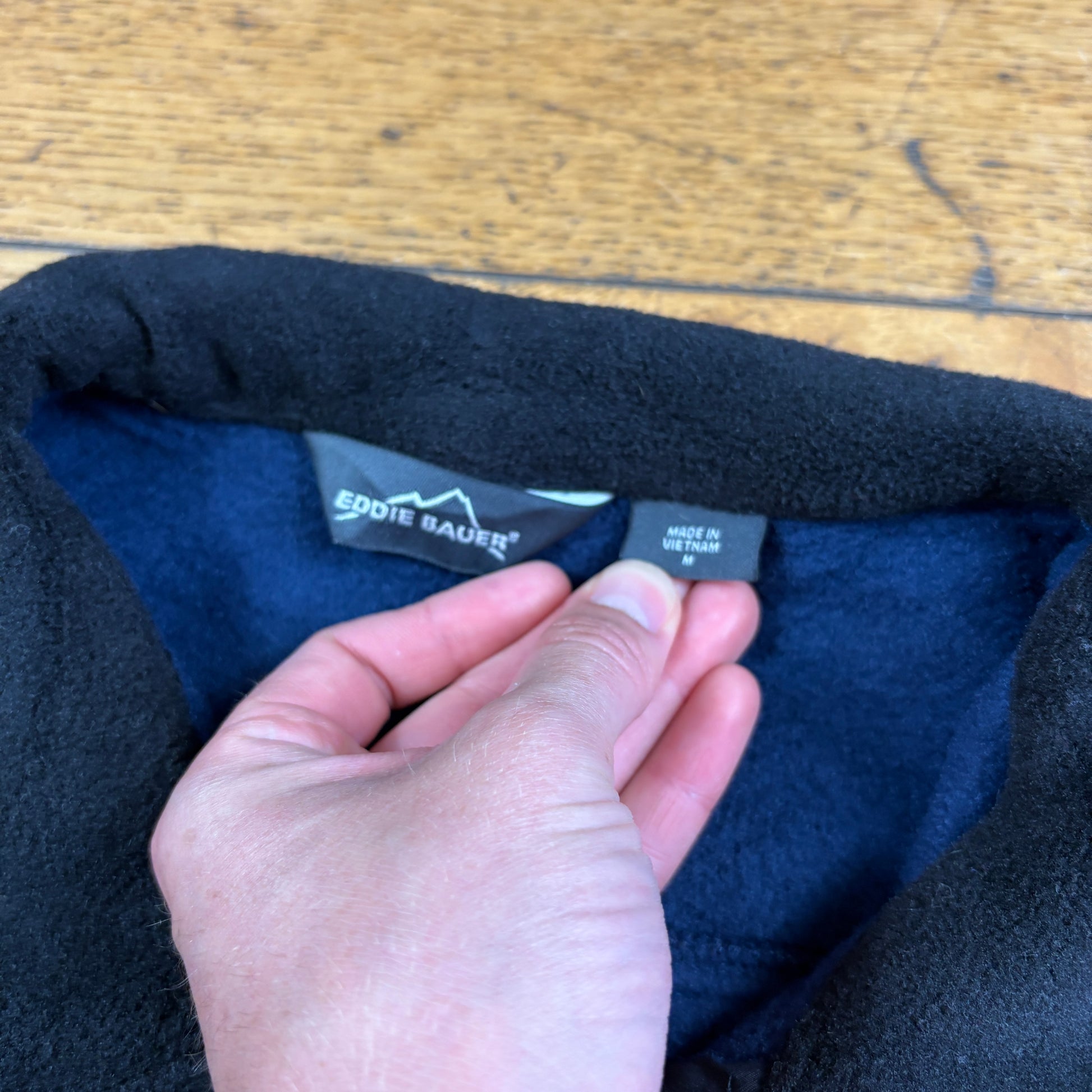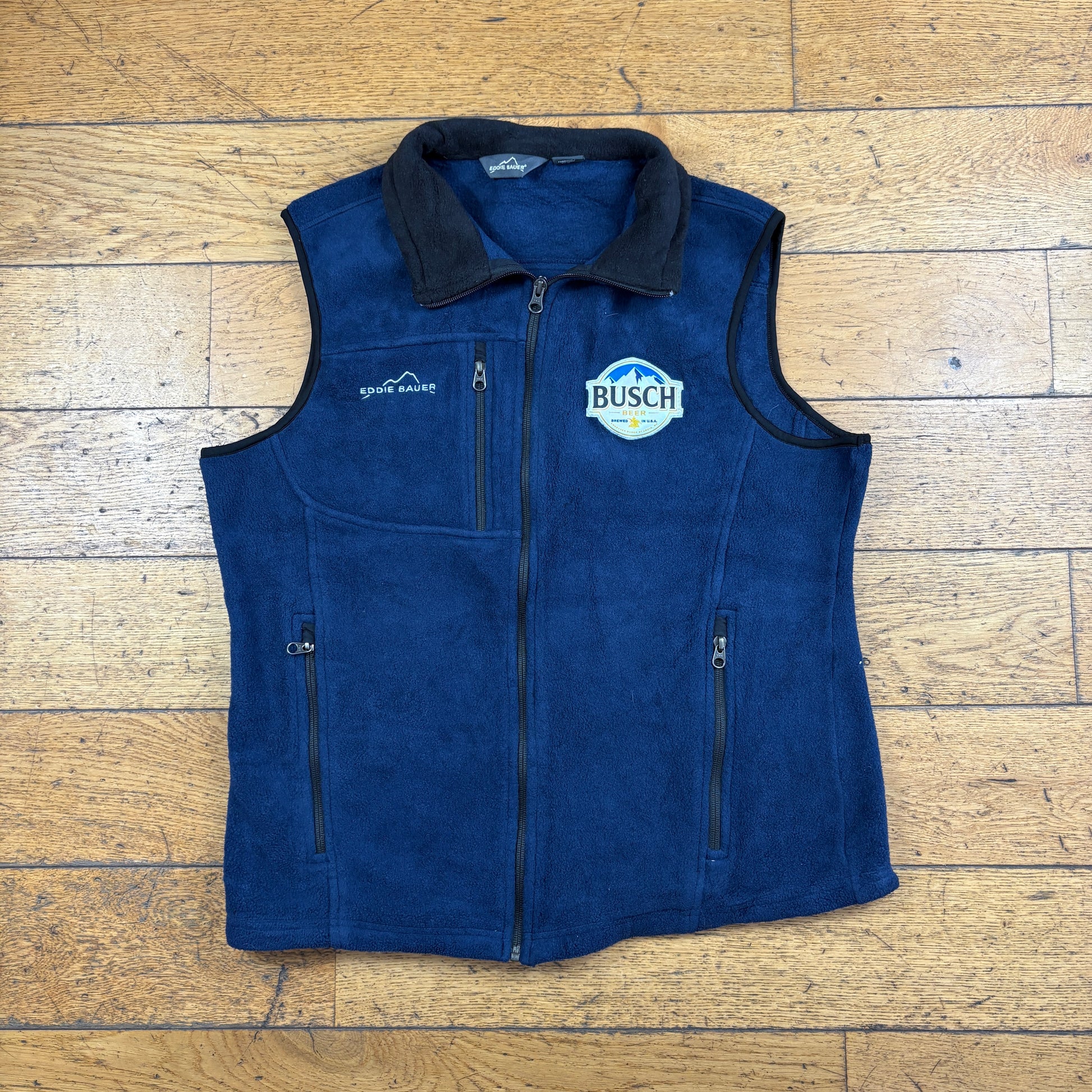 Vintage Eddie Bauer Busch Beer Navy Embroidered Fleece Gilet Vest Sweatshirt - M