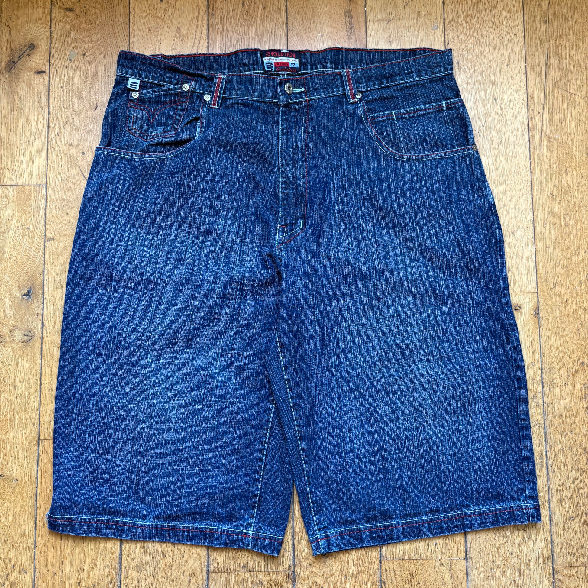 Vintage Embroidered Blue Hip Hop Baggy Shorts Jorts - 42