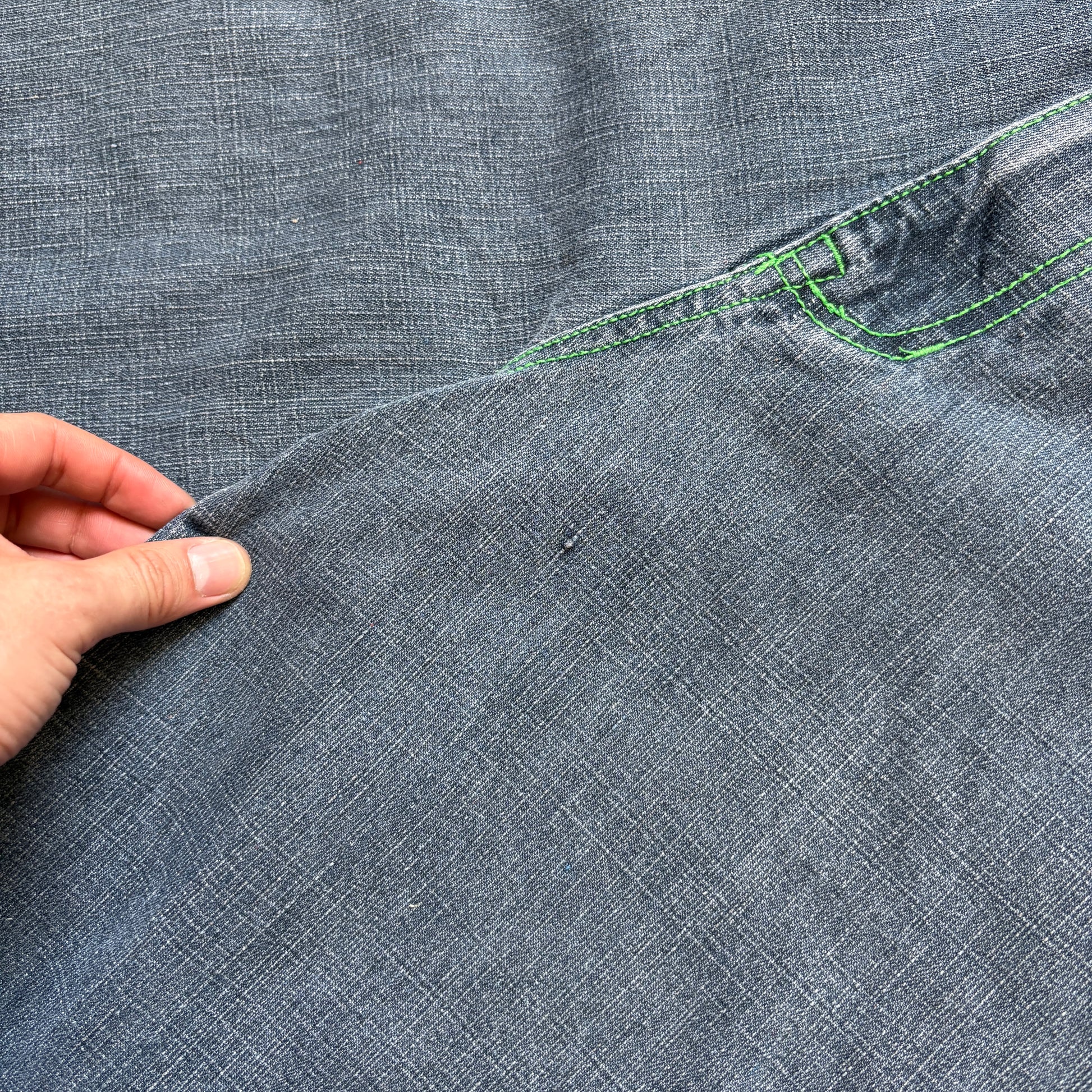 Contrast stitch true religion JNCO Coogi Southpole akademics Fubu skate rocawear embroidered denim jeans jorts skatewear surfwear carpenter cargo japanese denim