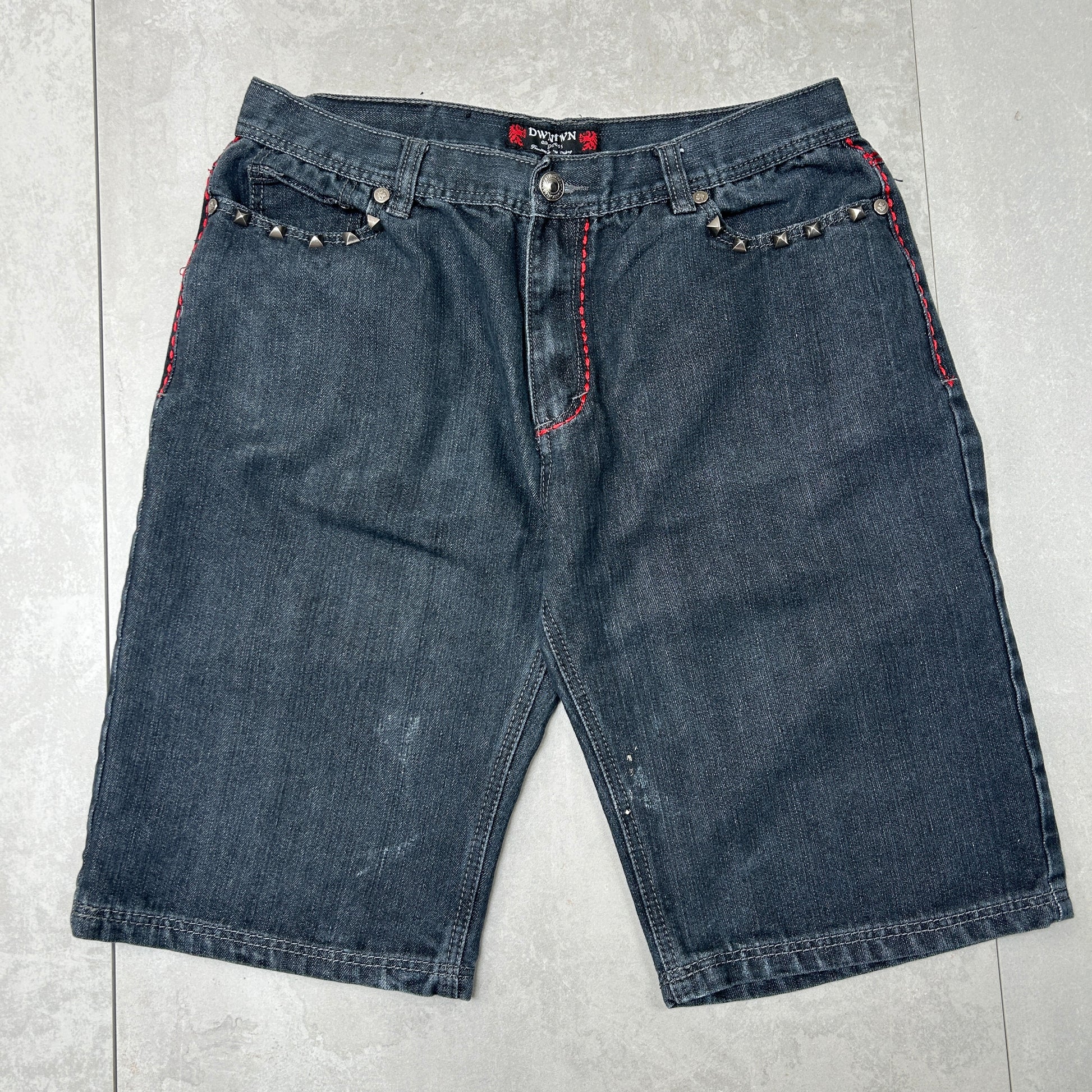 Vintage Embroidered Hip Hop Baggy Black Shorts Jorts - 34