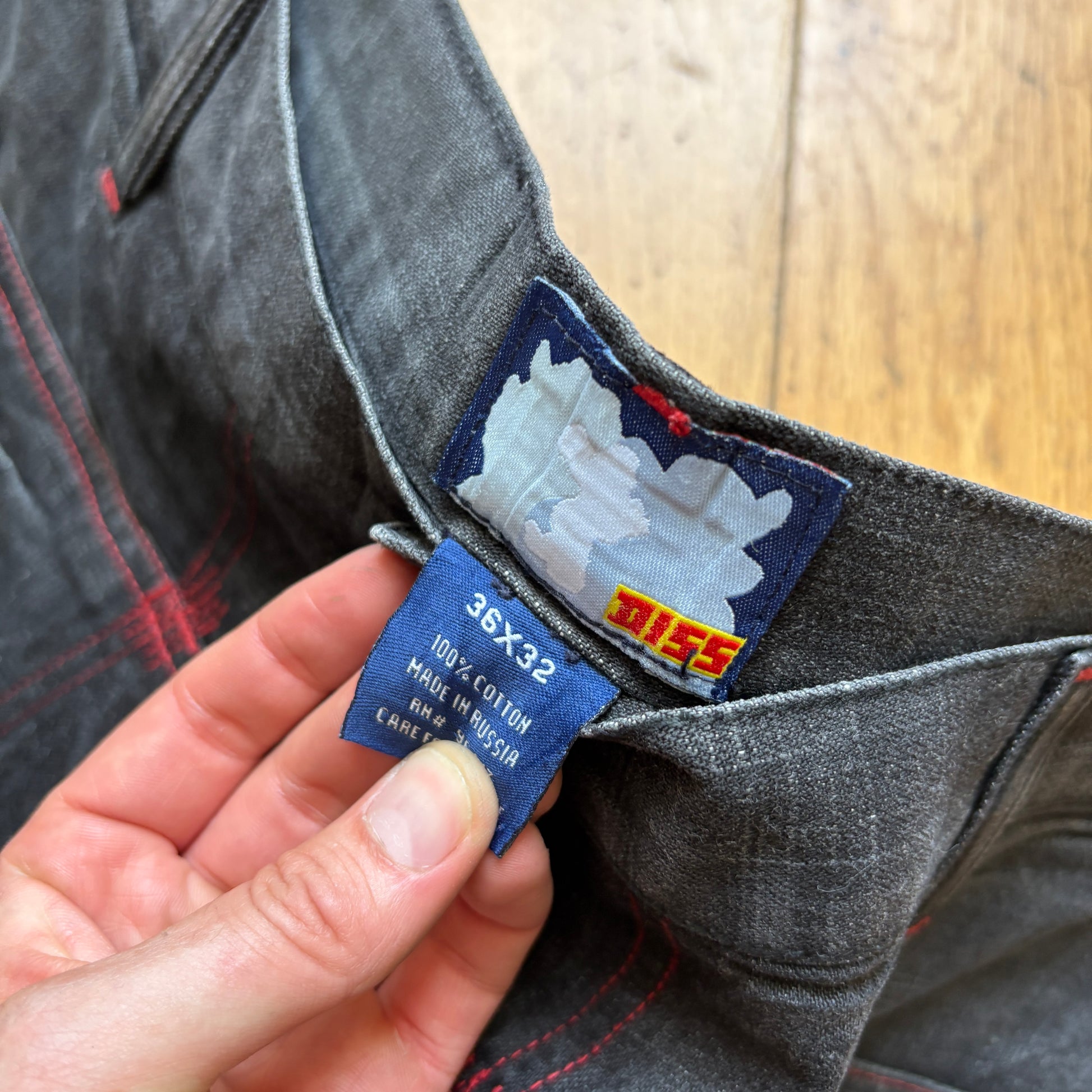 Contrast stitch true religion JNCO Coogi Southpole akademics Fubu skate rocawear embroidered denim jeans jorts skatewear surfwear carpenter cargo japanese denim