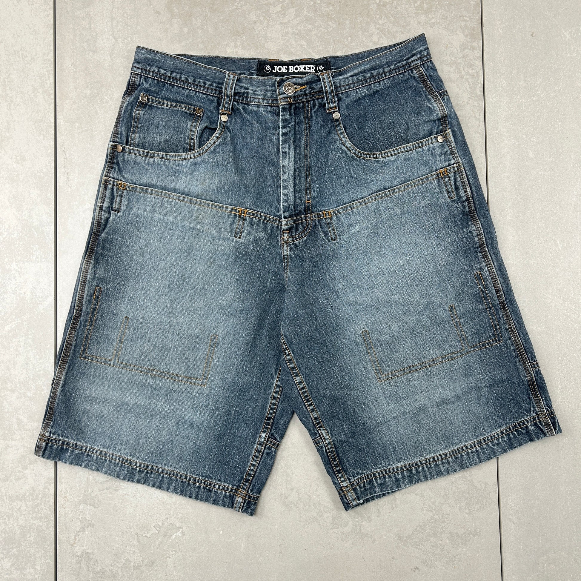 Vintage Embroidered Hip Hop Baggy Blue Shorts Jorts - 32