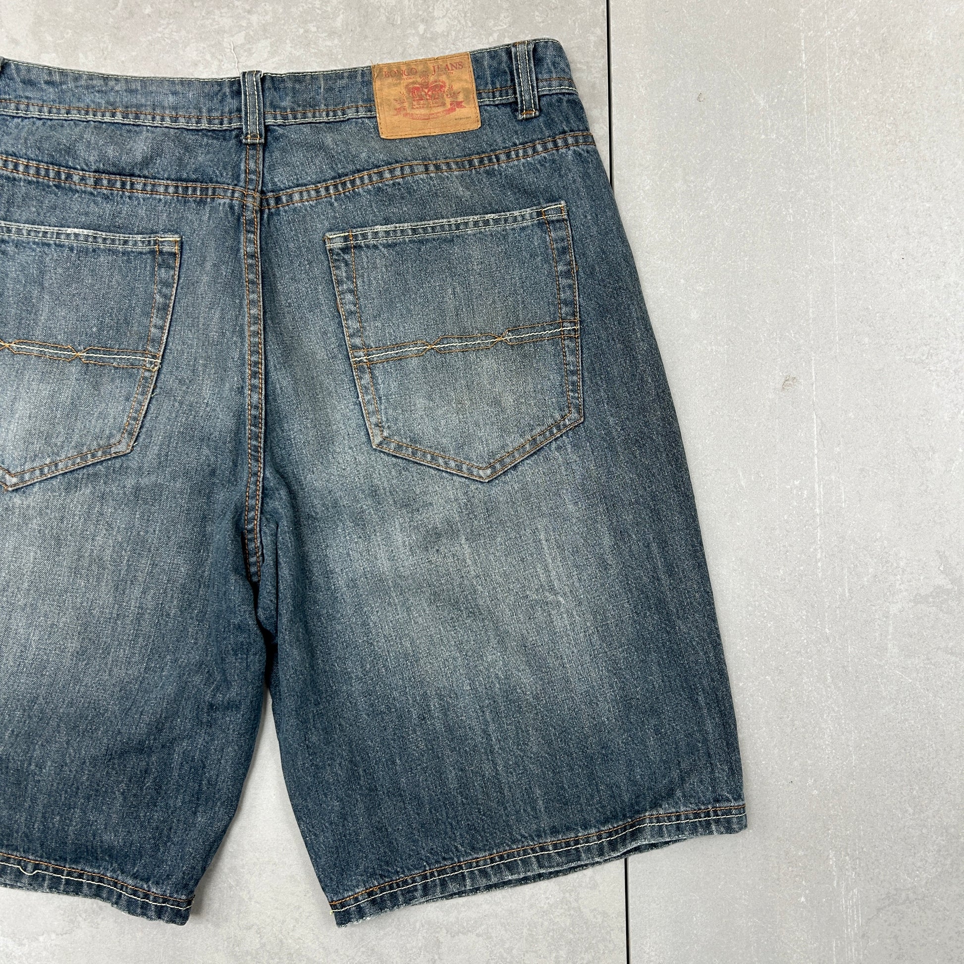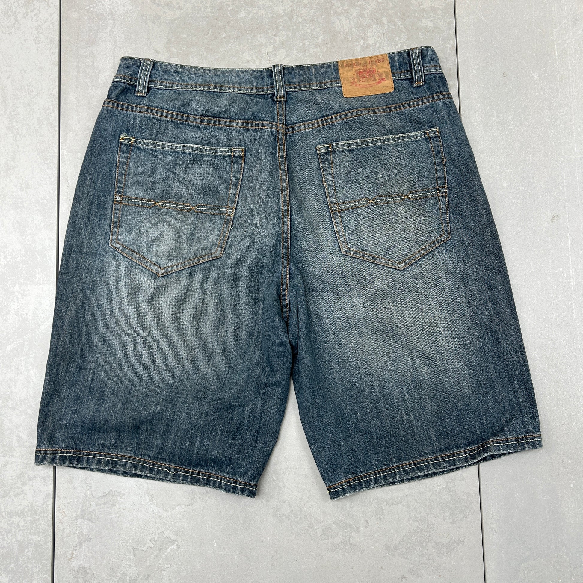 Vintage Embroidered Hip Hop Baggy Blue Shorts Jorts - 38
