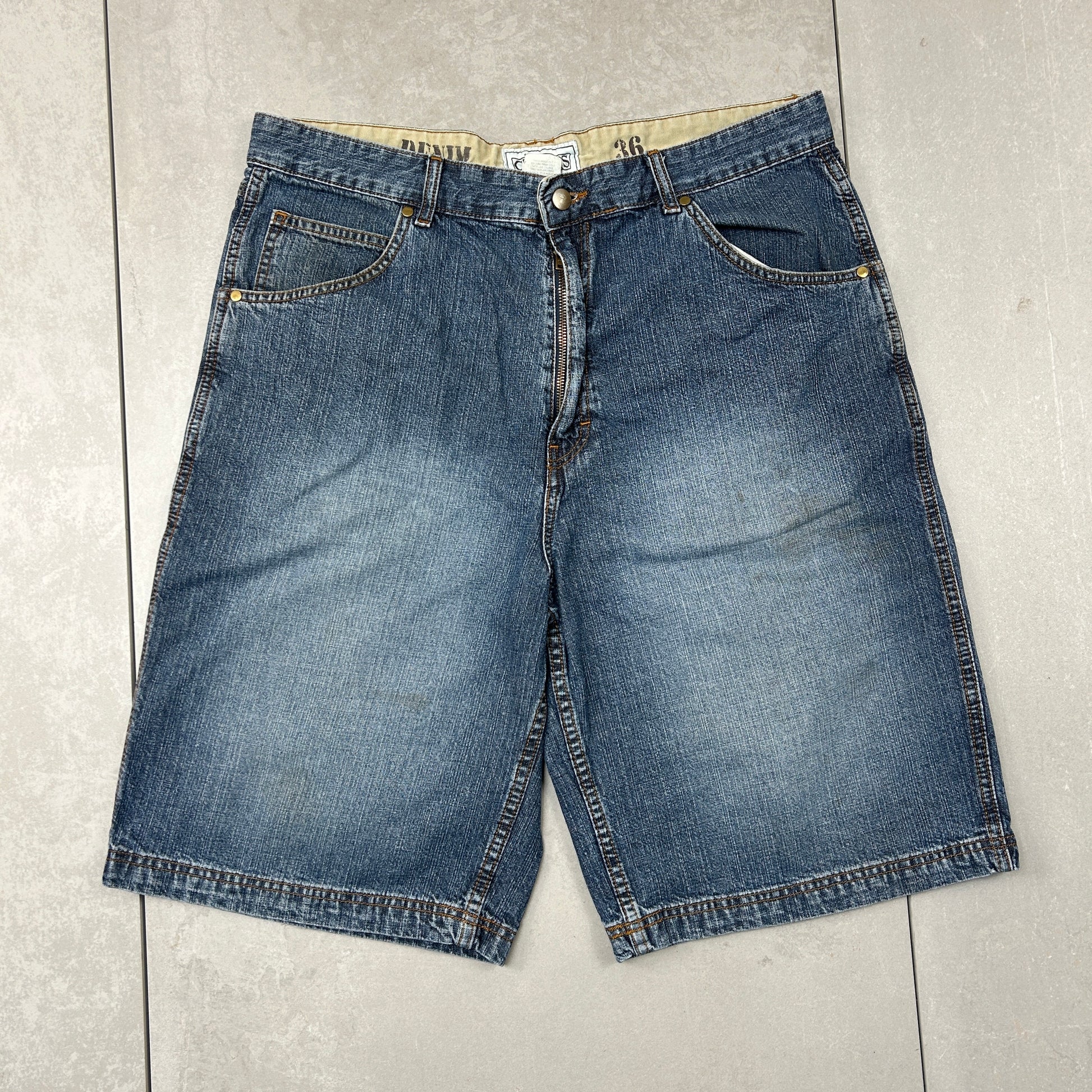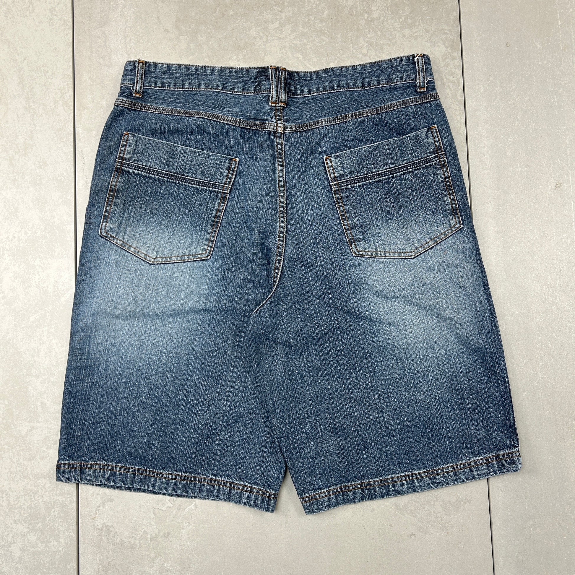 Vintage Embroidered Hip Hop Baggy Blue Shorts Jorts - 38