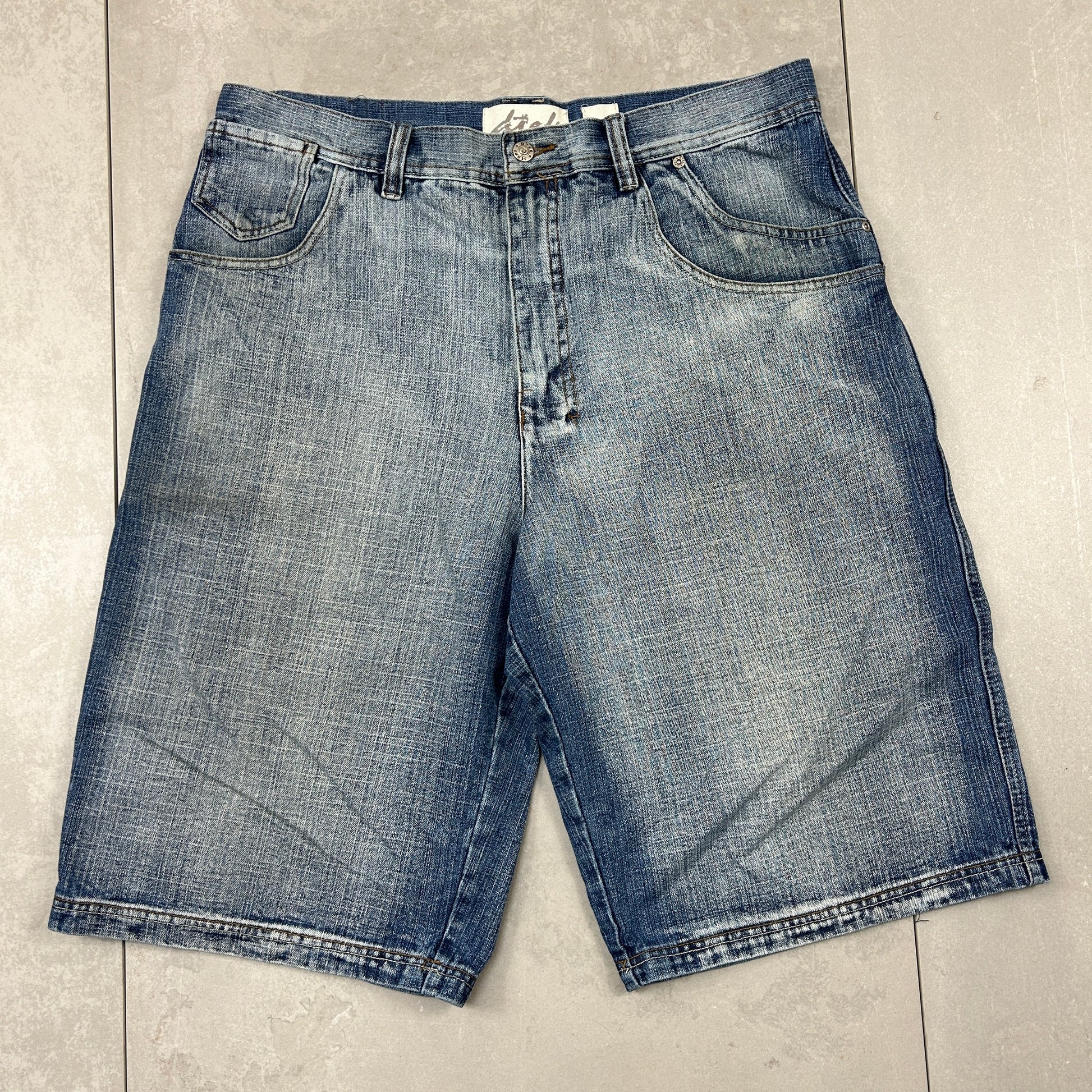 Vintage Embroidered Hip Hop Baggy Blue Shorts Jorts - 38