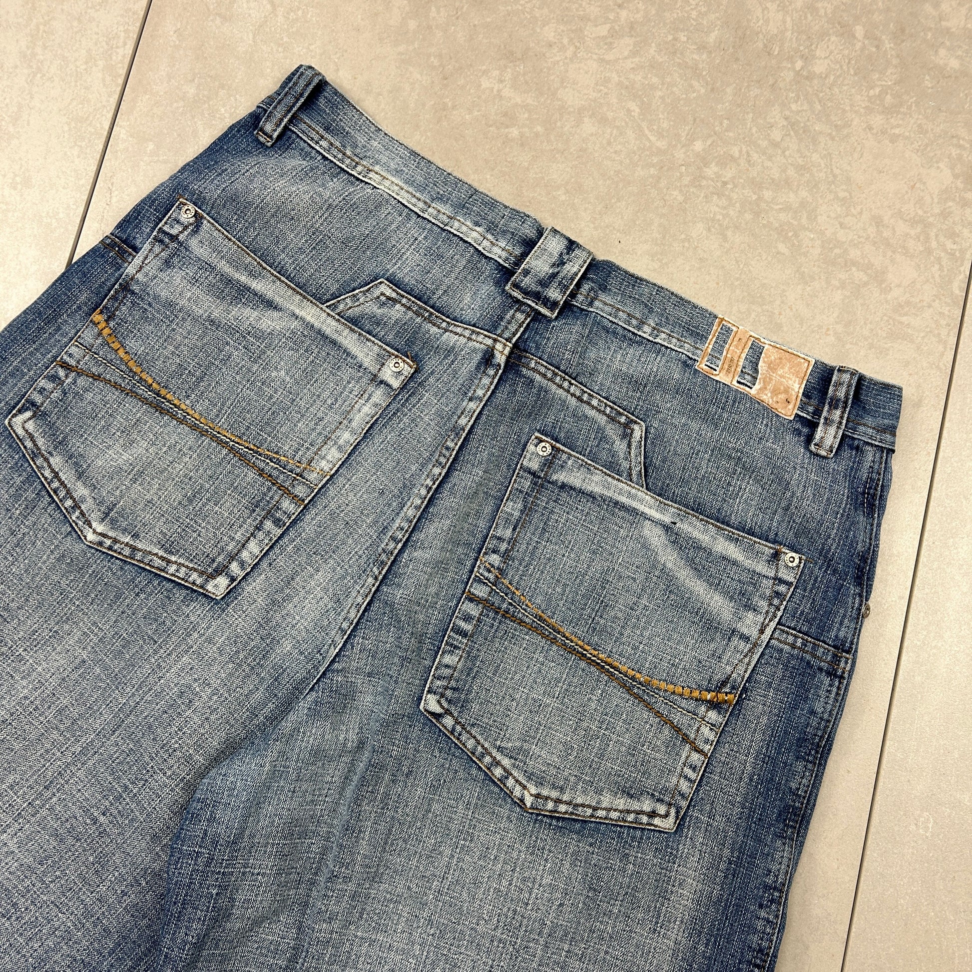 Contrast stitch true religion JNCO Coogi Southpole akademics Fubu skate rocawear embroidered denim jeans jorts skatewear surfwear carpenter cargo japanese denim