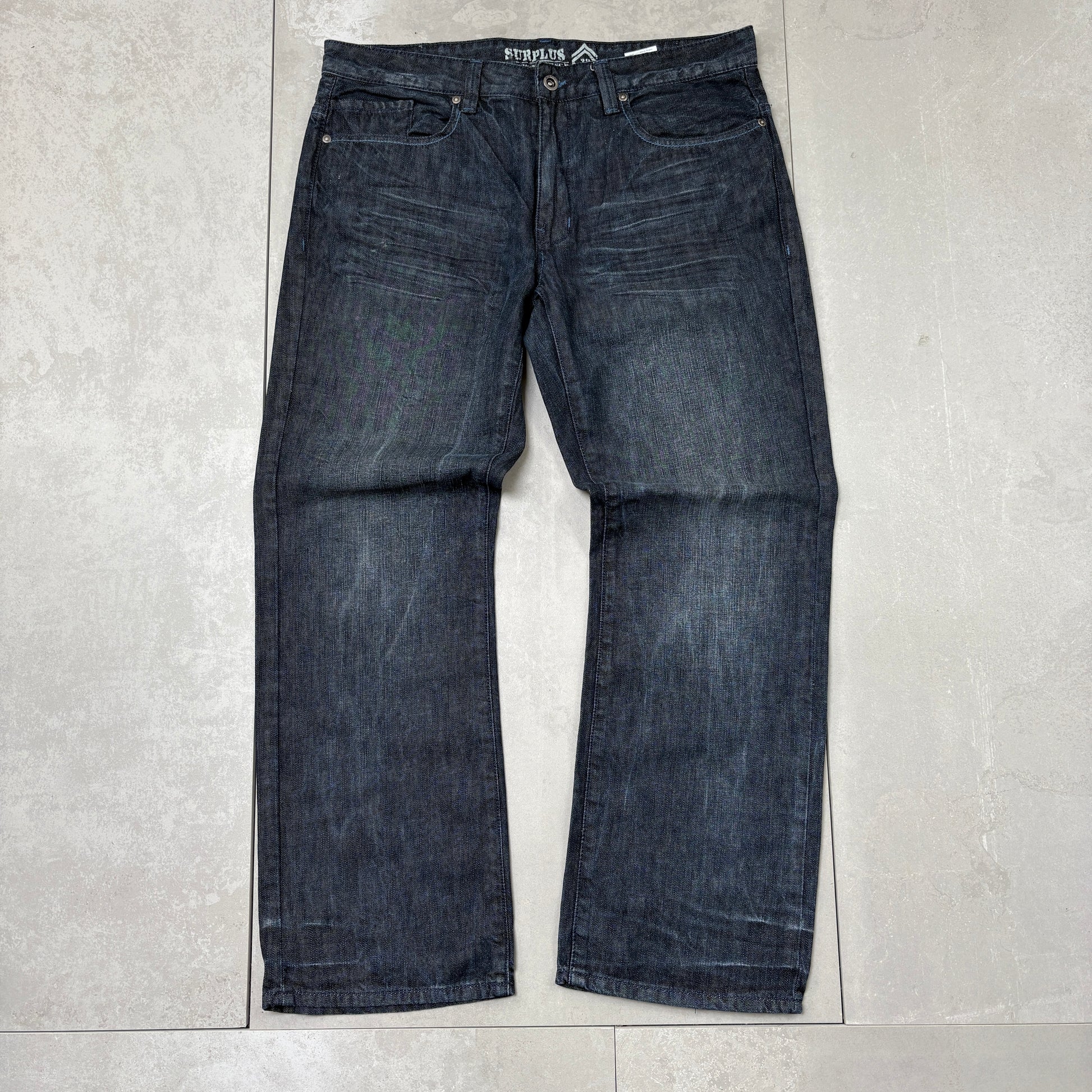 Contrast stitch true religion JNCO Coogi Southpole akademics Fubu skate rocawear embroidered denim jeans