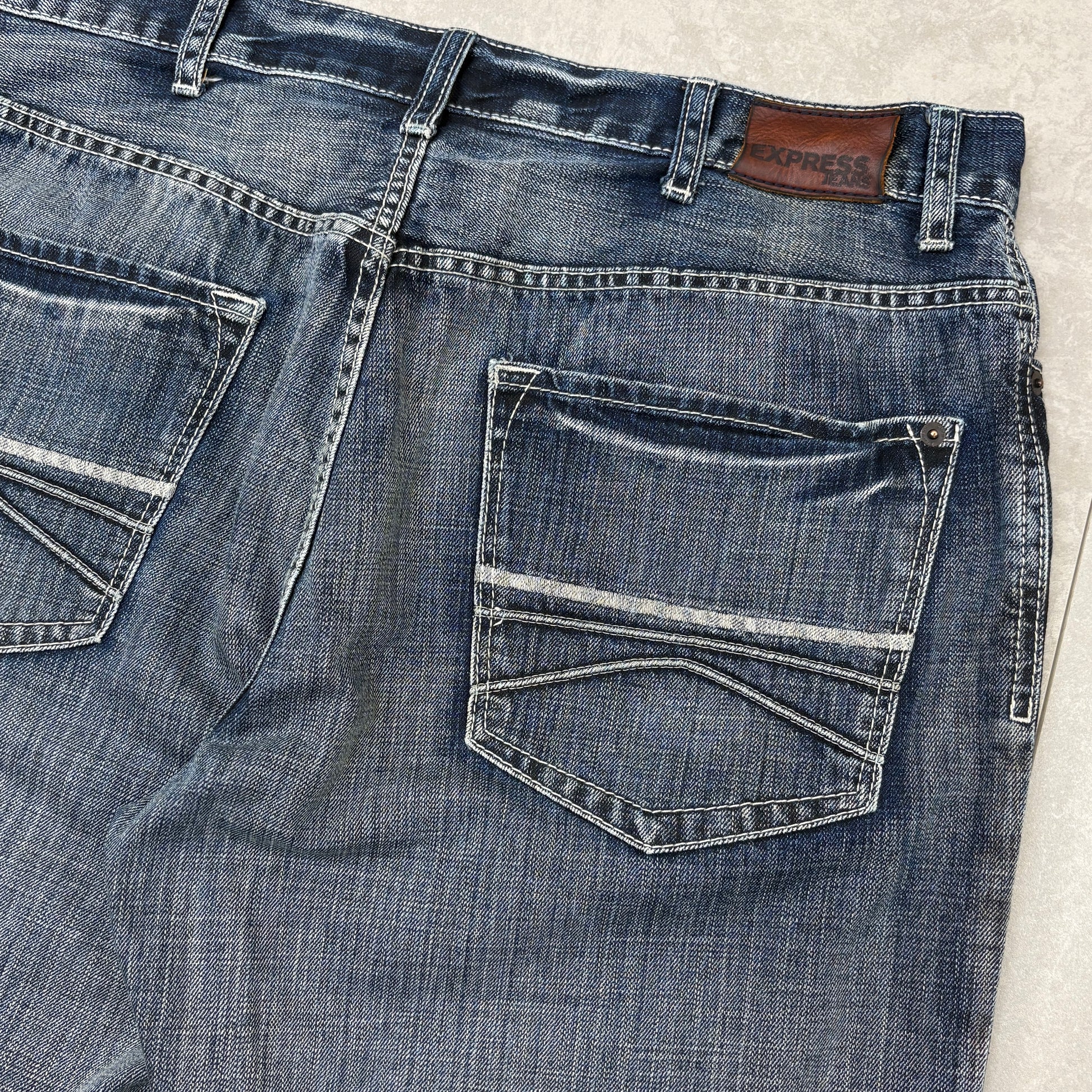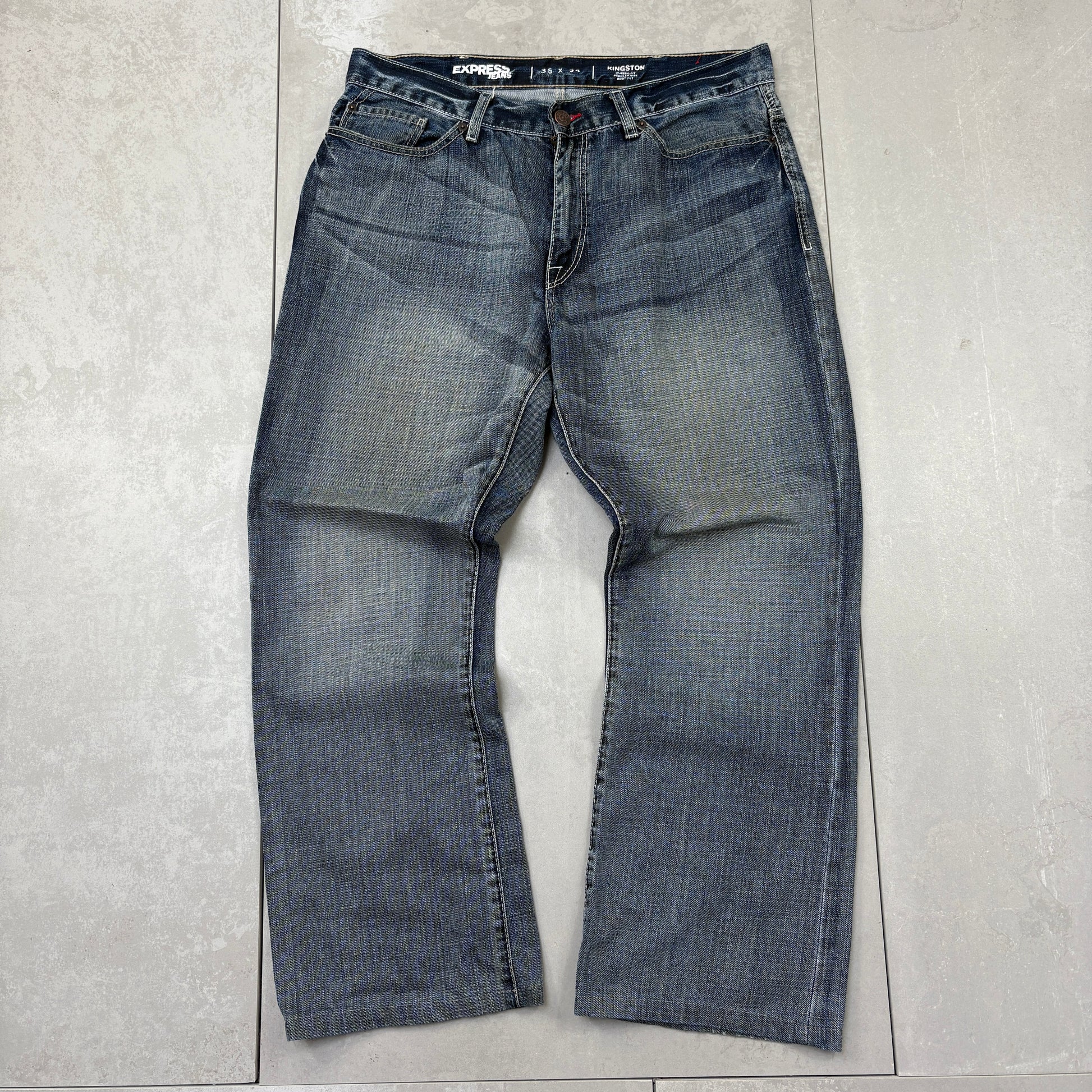 Vintage Embroidered Hip Hop Blue Baggy Jeans - 38